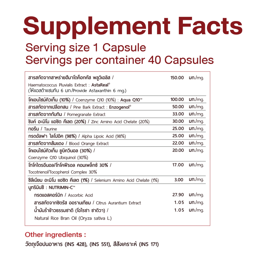 ดูรายละเอียดสินค้าเกี่ยวกับ 🍁 แอสตาแซนธิน ผลิตภัณฑ์เสริมภูมิคุ้มกัน ต้านอนุมูลอิสระอันทรงพลัง เผยผิวสวยและสุขภาพดีอย่างยั่งยืน คัดแล้วเฉพาะแบรนด์ดัง ปลอดภัยเชื่อถือได้ นิยมสูงสุด จัดจำหน่ายและส่งตรงโดยแบรนด์บริษัทจาก Official เองโดยตรง Nectapharma, VISTRA, Biocap, Vida, CEO Factory, INZENT, Nuriv, Dr.PONG, Bomi