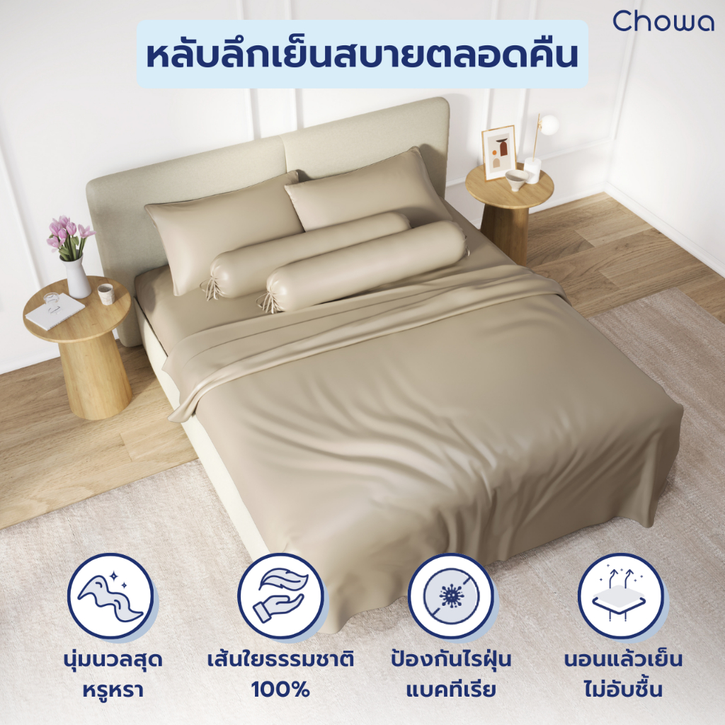Chowa New ผ้าปูที่นอน Finest วัสดุ Lyocell Tencel™ ผ้าที่นอนสัมผัสเนียนนุ่มสุดหรู หลับลึกเย็นสบาย