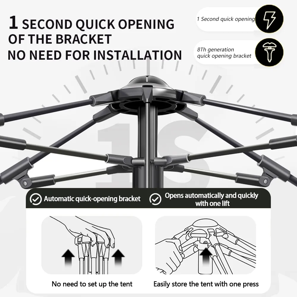 ไม่ต้องติดตั้ง เต็นท์สามารถเปิดได้ใน 1 วินาที ทำให้การจัดเก็บง่ายและสะดวกยิ่งขึ้น