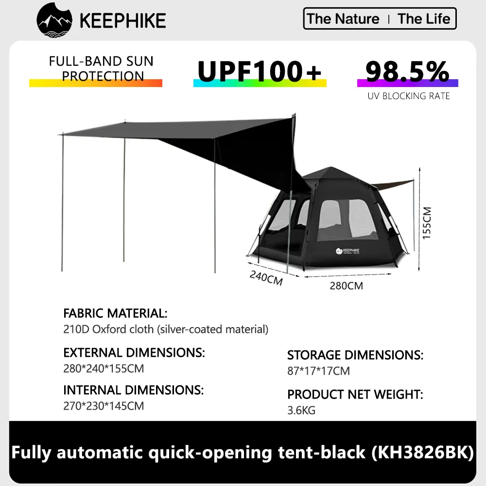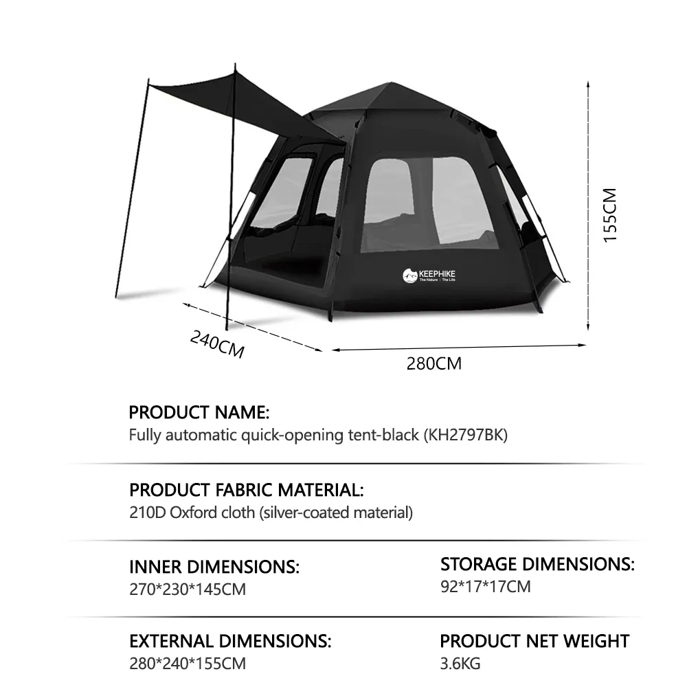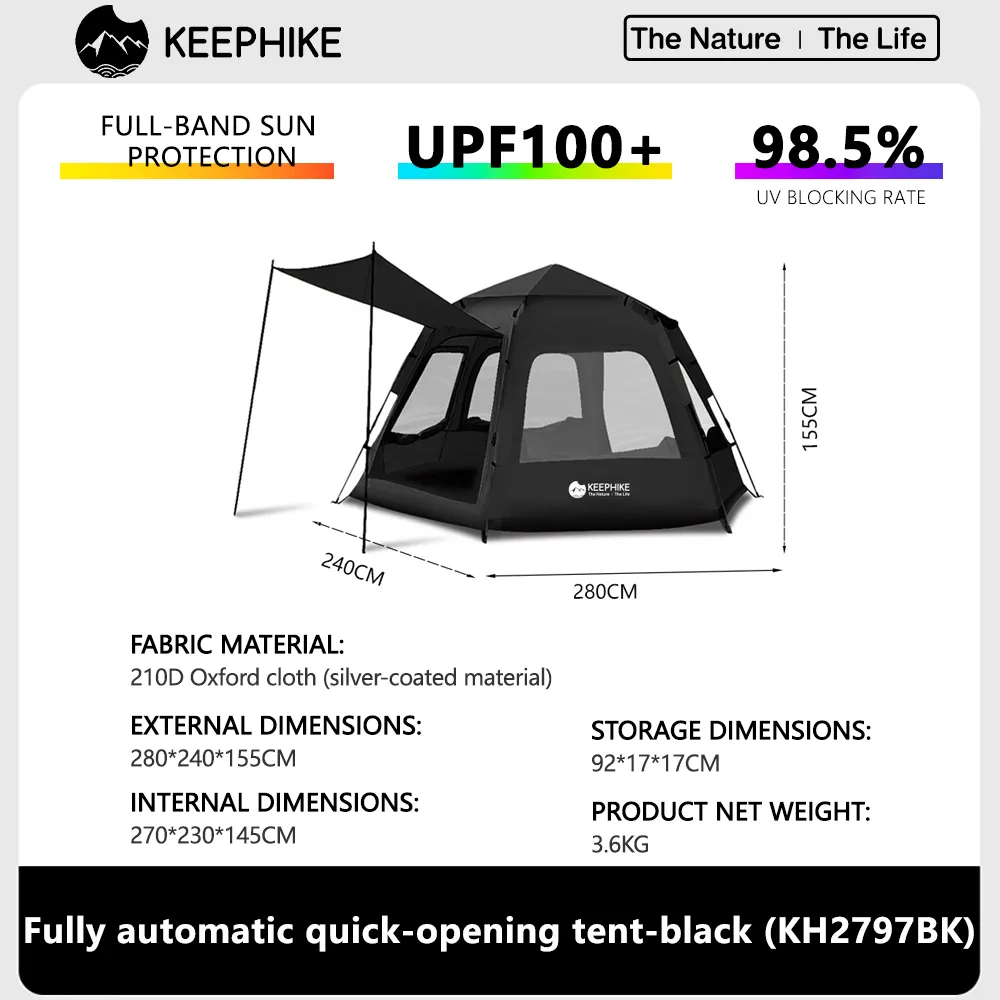 KEEPHIKE เต็นท์หกเหลี่ยมแบบพกพา กางง่ายอัตโนมัติ กันแดด เหมาะสำหรับปิคนิคและแคมป์ปิ้ง