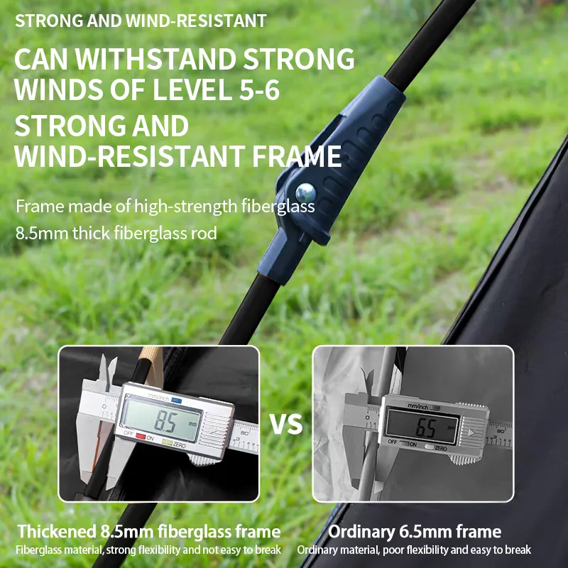 โครงแข็งแรงและทนลม สามารถทนต่อลมแรง 5-6 ครั้ง แข็งแรงและทนลม โครงทำจากวัสดุไฟเบอร์กลาสที่มีความแข็งแรงสูง แกนไฟเบอร์กลาสหนา 8.5 มม.