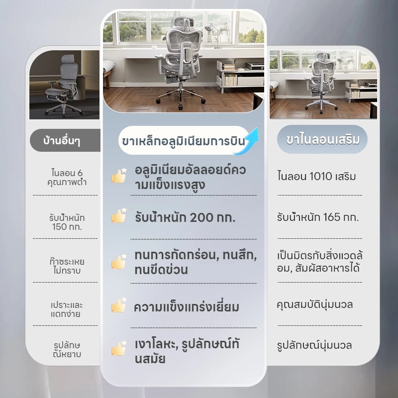 ⭐ วัสดุเกรดพรีเมียม: โครงสร้างแข็งแรงทนทาน ผ่านการรับรองมาตรฐาน BIFMA รับน้ำหนักได้ถึง 150 กก.