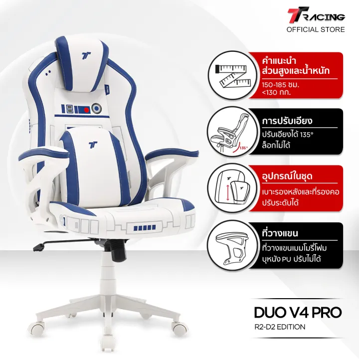 สั่งซื้อ TTRacing Duo V4 Pro R2-D2 Edition Gaming Chair เก้าอี้สีขาว เก้าอี้เกมมิ่งเพื่อสุขภาพ Ergonomic E-Sport นุ่มสบาย ตามหลักสรีระศาสตร์ เก้าอี้เบาะ นุ่ม เกรดพรีเมี่ยม ชิ้นนี้ได้ที่ :