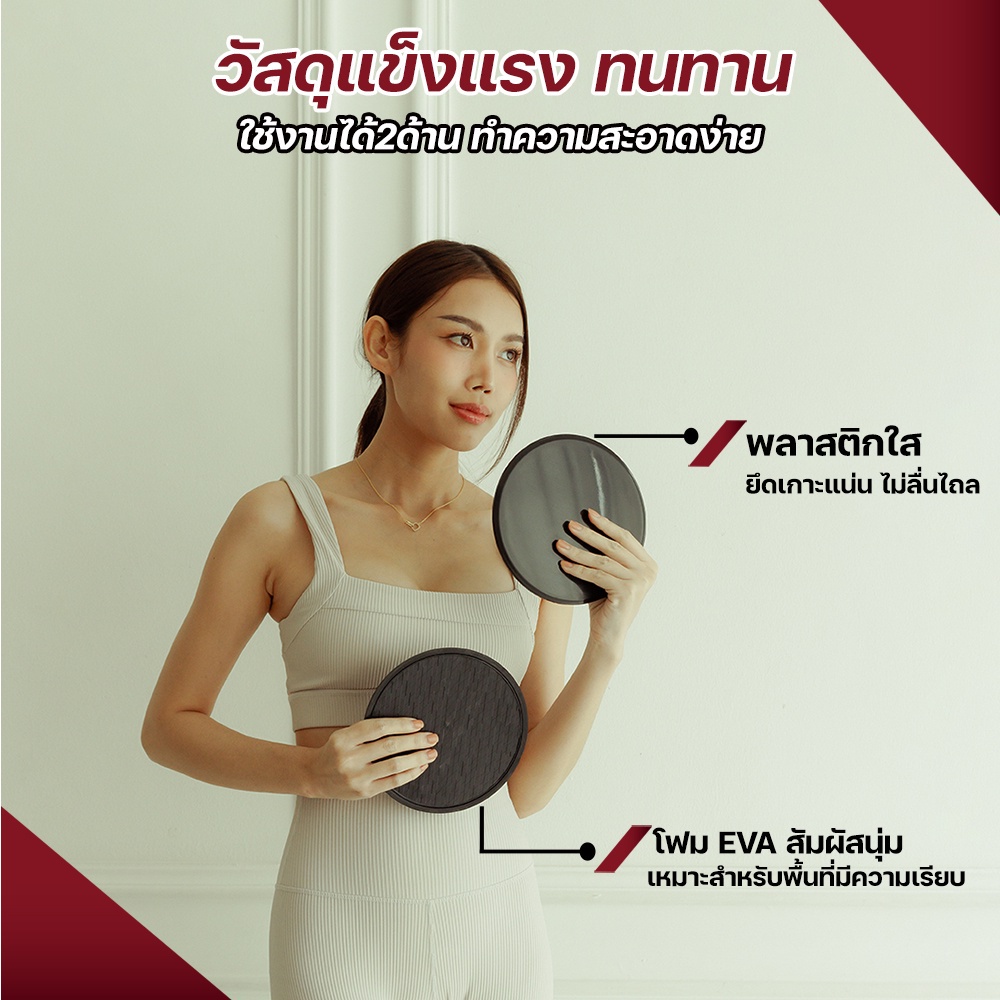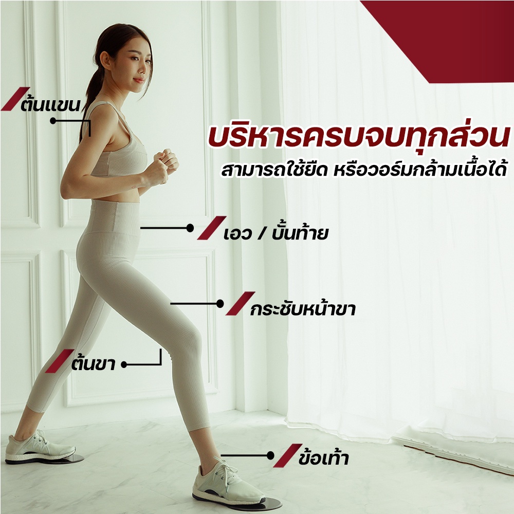 - ใช้ออกกำลังกายแบบเวทเทรนนิ่งได้หลากหลายท่า เช่น Plank Pike, Reverse Tuck, Mountain Climber, Plank Knee Tuck, Reverse Plank, Arm Slider Out