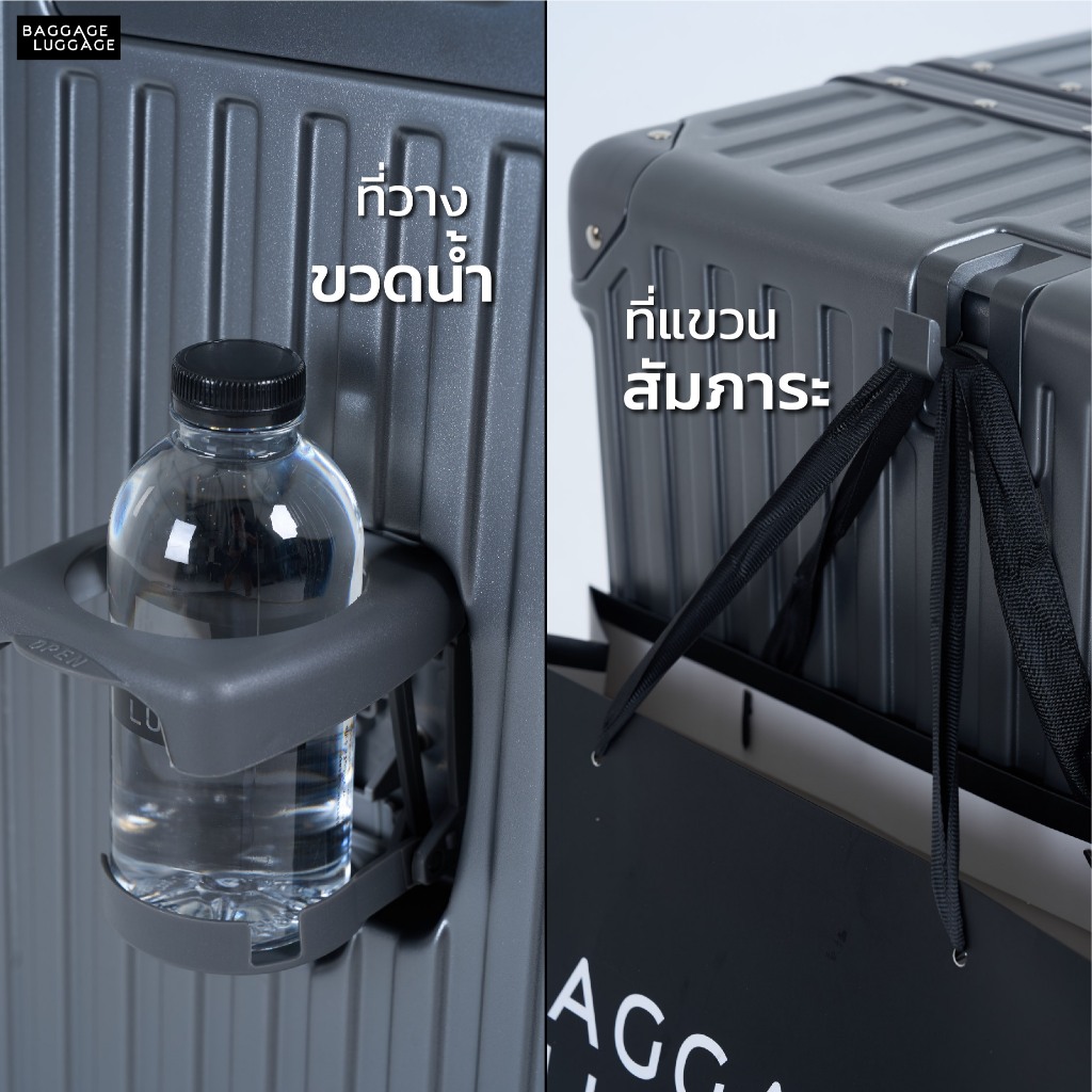 Baggage Luggage รุ่น SportX Series สร้างความแตกต่างด้วยการผสมผสานดีไซน์ทรงถังที่ดูแข็งแกร่ง สมบุกสมบัน เข้ากับฟังก์ชันการใช้งานที่ทันสมัยอย่างลงตัว ไม่ใช่แค่กระเป๋าเดินทางสำหรับเก็บของ แต่เป็นเหมือนแกดเจ็ตคู่ใจที่ทำให้การเดินทางง่ายขึ้น การเลือกใช้วัสดุ PC เสริมด้วยโครงอลูมิเนียมเป็นการยกระดับความทนทานให้เหนือกว่ากระเป๋าเดินทางทั่วไป พร้อมปกป้องทรัพย์สินของคุณอย่างเต็มที่ ในขณะที่รายละเอียดเล็กๆ น้อยๆ อย่างที่วางแก้วและพอร์ต USB สะท้อนให้เห็นถึงความใส่ใจในความต้องการของนักเดินทางยุคดิจิทัลอย่างแท้จริง