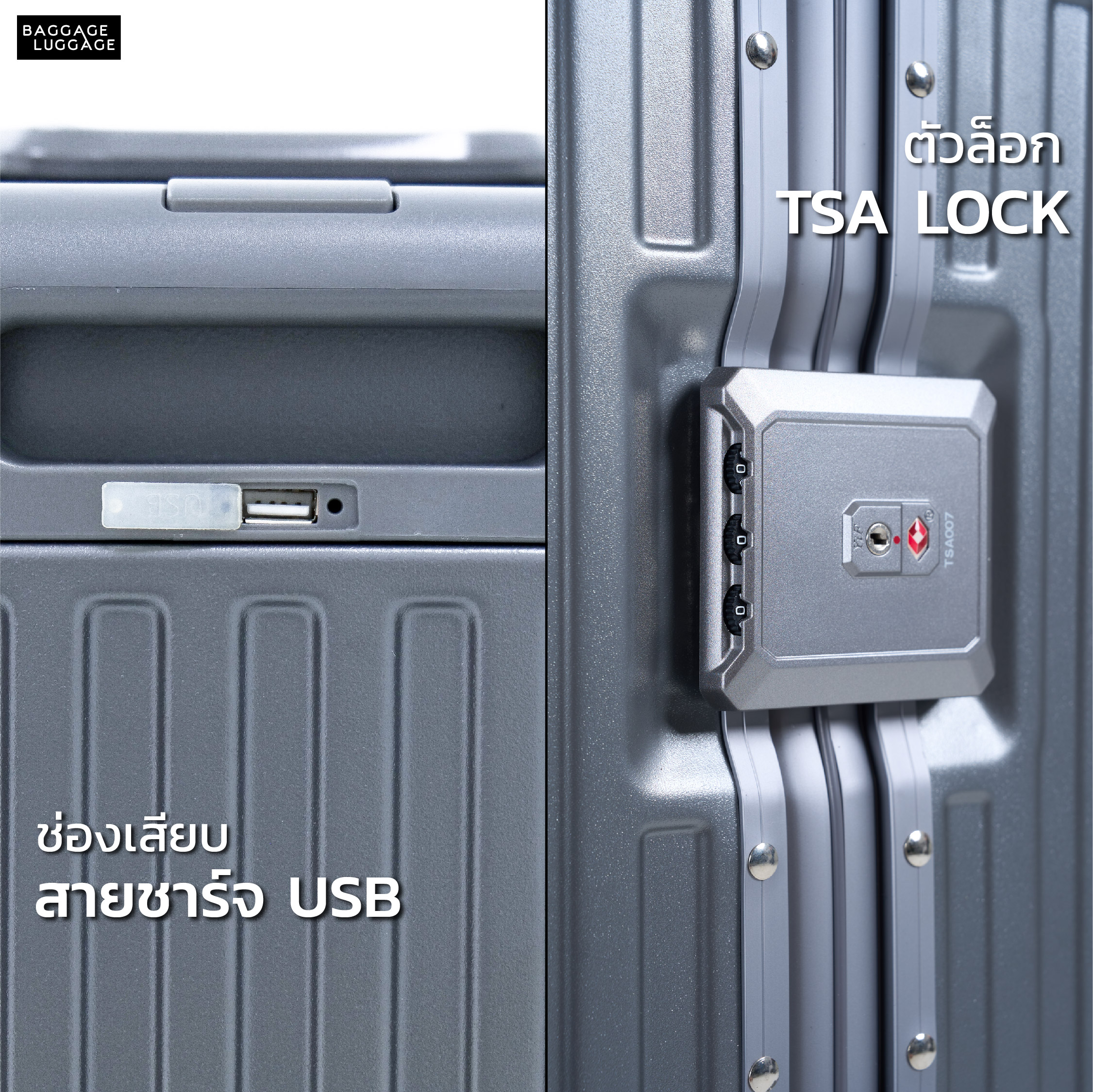 ชื่อสินค้า : BAGGAGE LUGGAGE รุ่น SportX Series กระเป๋าเดินทางทรงถัง PC เสริมโครงอลูมิเนียม พร้อมช่องชาร์จ USB และที่วางแก้ว