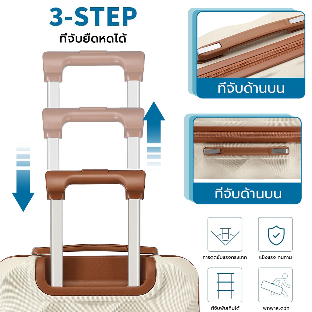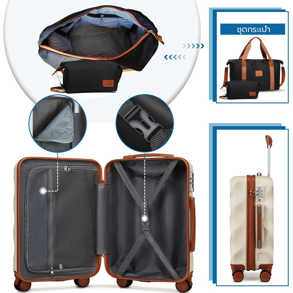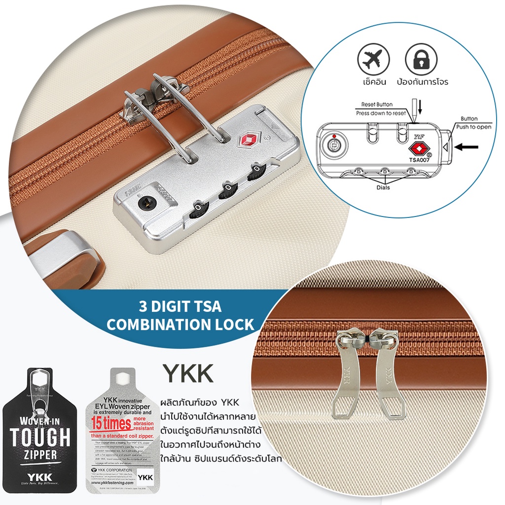| ระบบล็อก TSA ในตัว | ✅ เดินทางไปต่างประเทศได้อย่างราบรื่น ไม่ต้องกังวลว่ากระเป๋าจะเสียหายจากการตรวจสอบ |