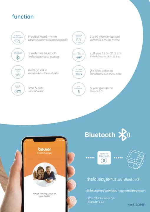 ![beurer BC 54 BT เครื่องวัดความดันโลหิตที่ข้อมือ เชื่อมต่อ Bluetooth ส่งออกบันทึกผล รุ่น BC 54 BT [รับประกัน 5 ปี]](https://img.lazcdn.com/g/p/97a7bdc73b09c5ecb2dedbdd268c4ae6.jpg_2200x2200q80.jpg_.webp)