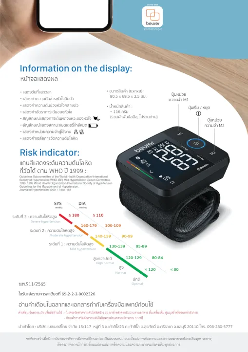 ฆพ.911/2565อ่านคำเตือนในฉลากและเอกสารกำกับเครื่องมือแพทย์ก่อนใช้นำเข้าโดย บริษัท เบลเมกส์ไทย จำกัด 15/117 หมู่ที่ 3 ซ.เก้ากิโล23 ถ.เก้ากิโล ต.สุรศักดิ์ อ.ศรีราชา จ.ชลบุรี 20110
