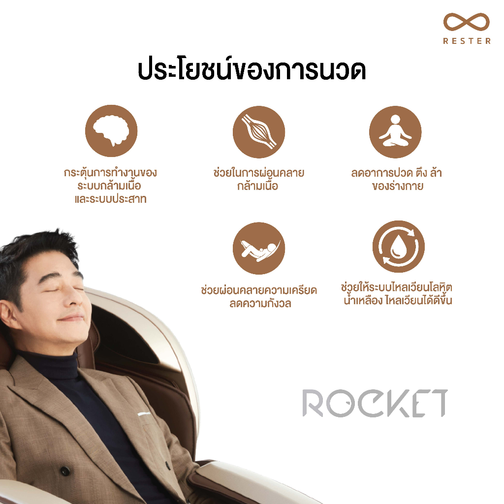 Rester Rocket เก้าอี้นวดไฟฟ้า โซฟานวดไฟฟ้า ระบบสแกนร่างกายอัตโนมัติ Zero Gravity นวดแบบผสมผสาน ผ่อนคลายความเหนื่อยล้า