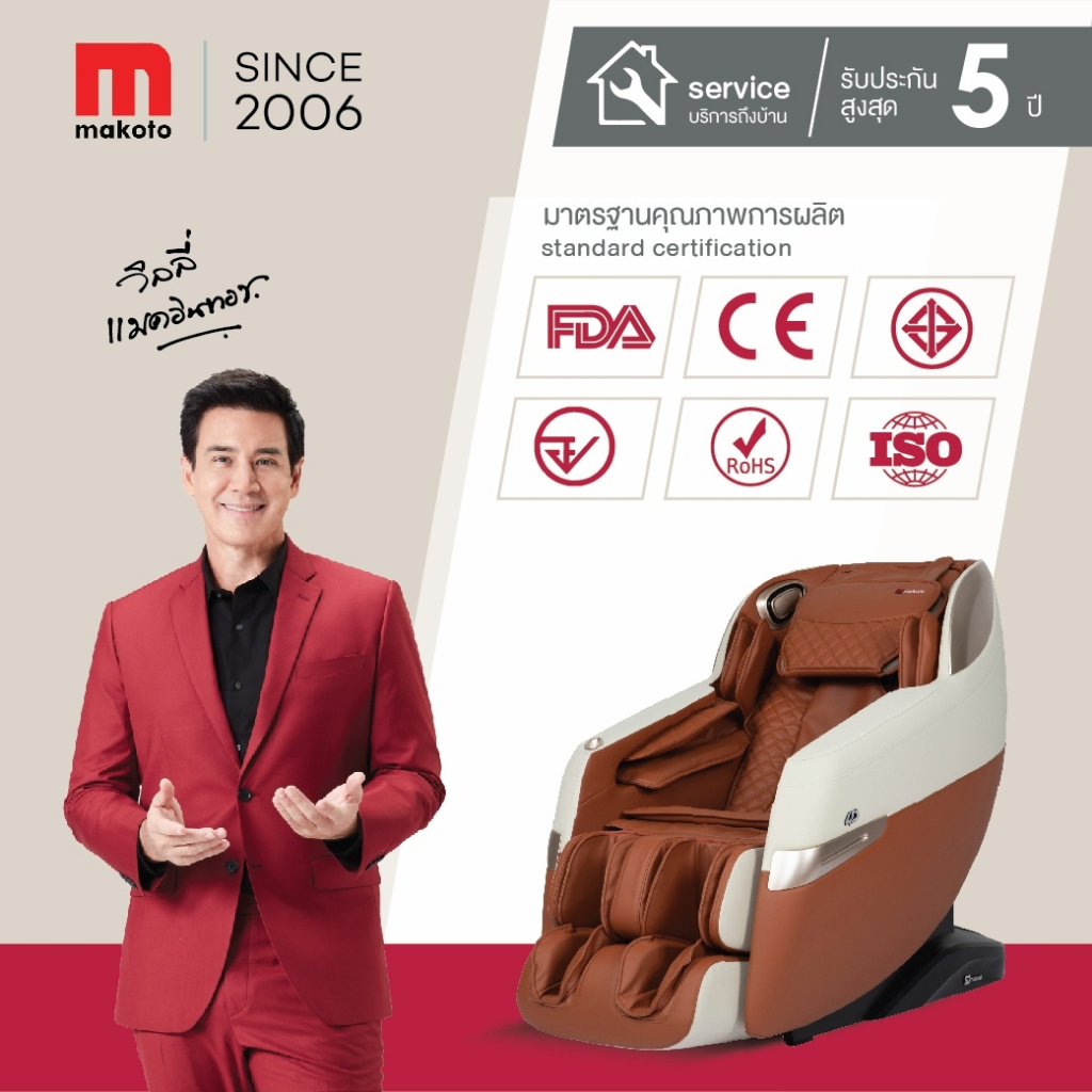 Makoto A202 เก้าอี้นวดไฟฟ้า นวดระบบ 4D เก้าอี้นวด Auto 16 โปรแกรม Voice Control/ Back&Leg Heat/ Bluetooth ผ่อนคลายกล้ามเนื้อ ลดอาการปวดเมื่อย ปรับปรุงคุณภาพการนอนหลับ โปรแกรมอัตโนมัติ ระบบ Zero Gravity