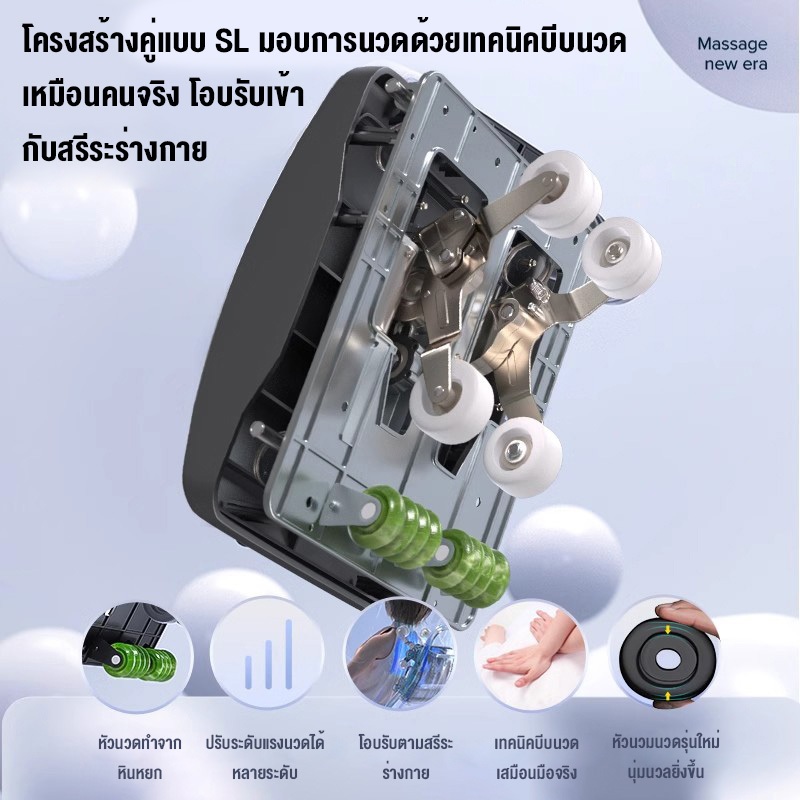 | ระบบรางนวด (Roller Track) | S-Track (คอถึงเอว) หรือ L-Track (คอถึงสะโพก) | ✅ ราง SL คู่ (นวดโค้งรับตั้งแต่คอจรดใต้ต้นขา) |