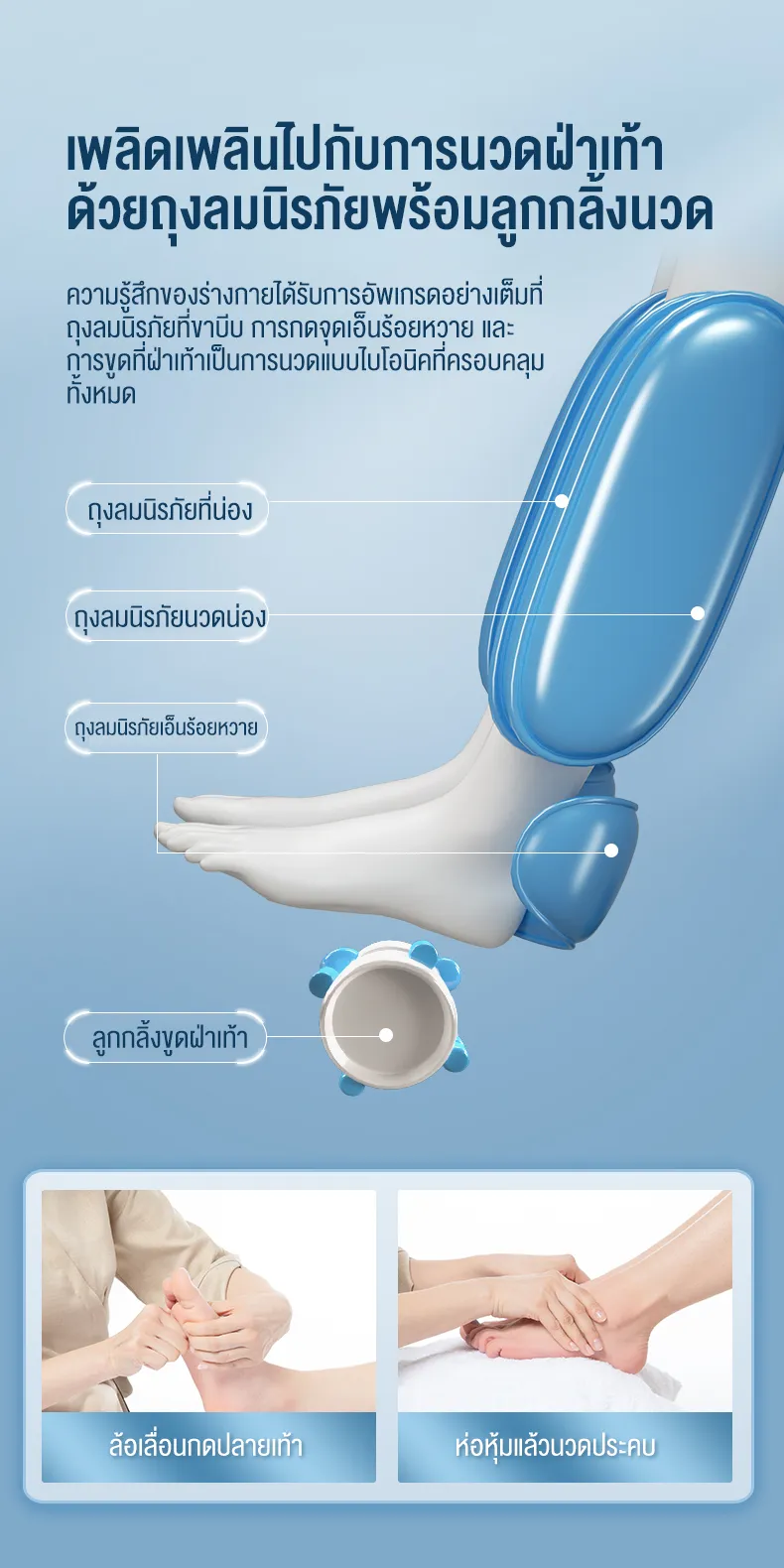 | การนวดเท้า | ลูกกลิ้ง + นวดกดจุด + ขูด |