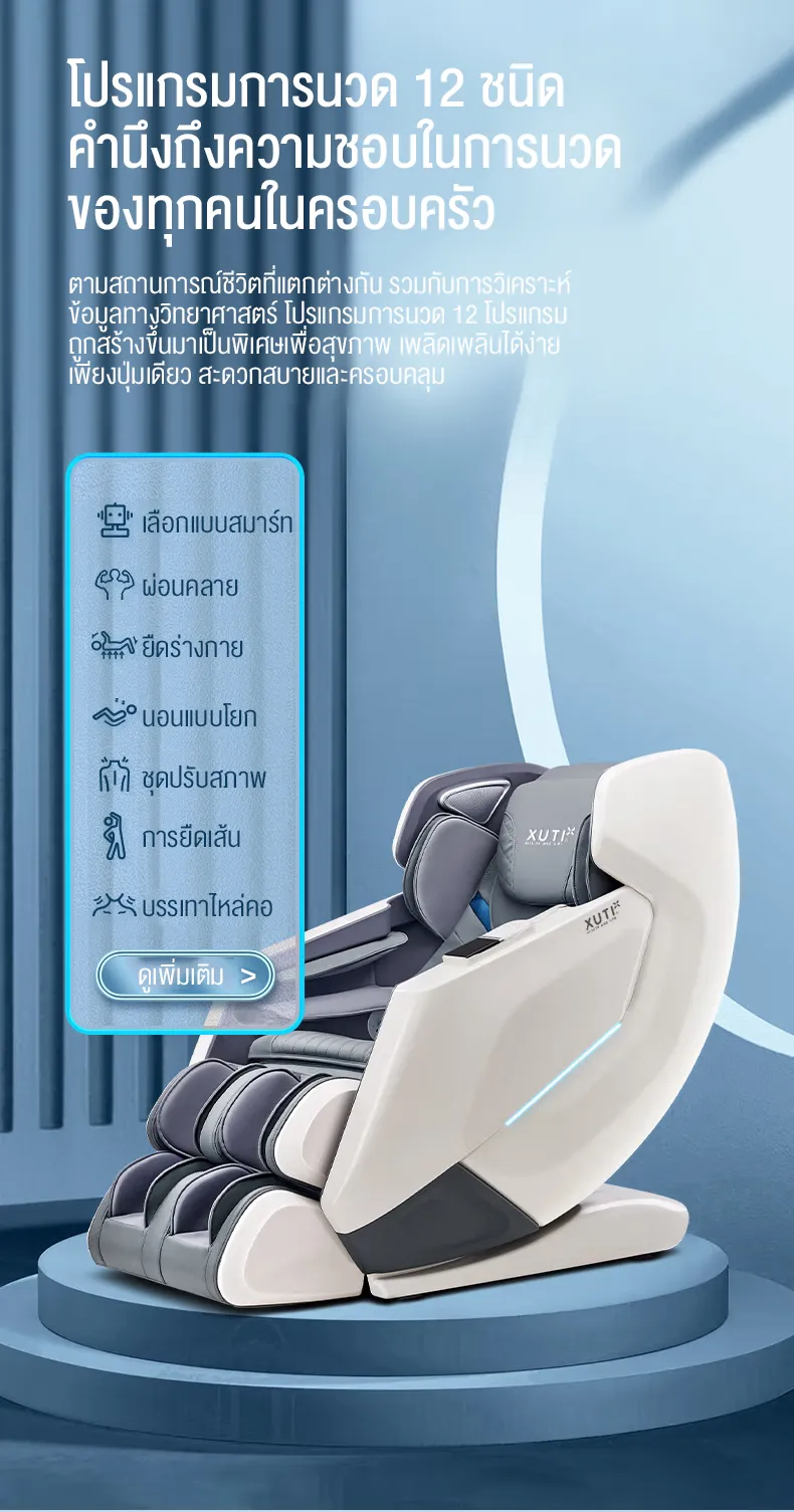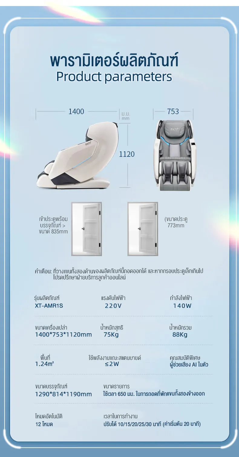 ชื่อสินค้า: XUTI AMR1S เก้าอี้นวดไฟฟ้าเพื่อสุขภาพ 3D อัจฉริยะ พร้อมระบบ Zero Gravity และรีโมทภาษาไทย