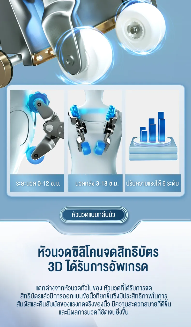 | เทคโนโลยีลูกกลิ้ง | 2D, นวดพื้นฐาน | ✨ 4D Humanoid เสมือนมือมนุษย์ |
