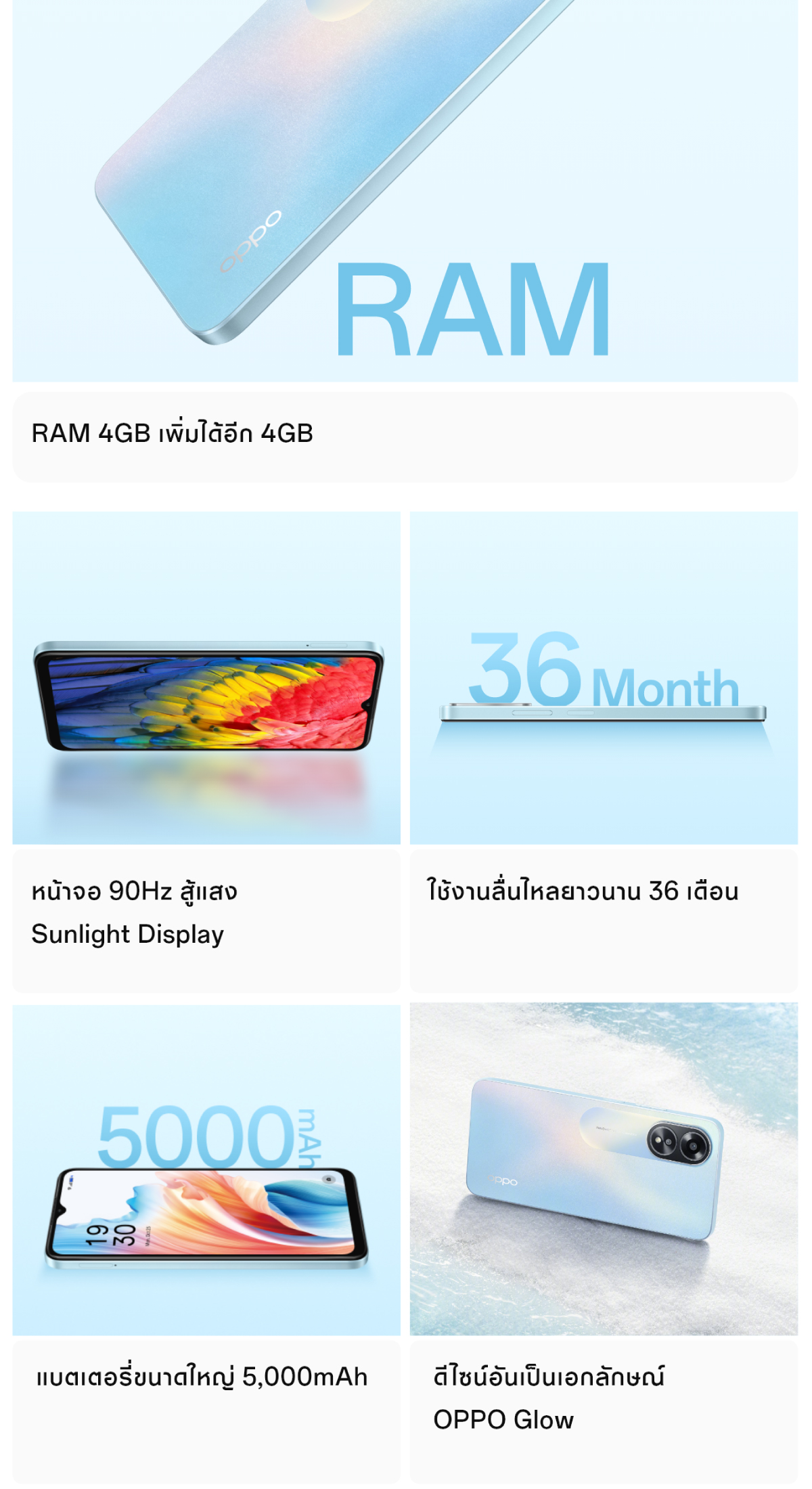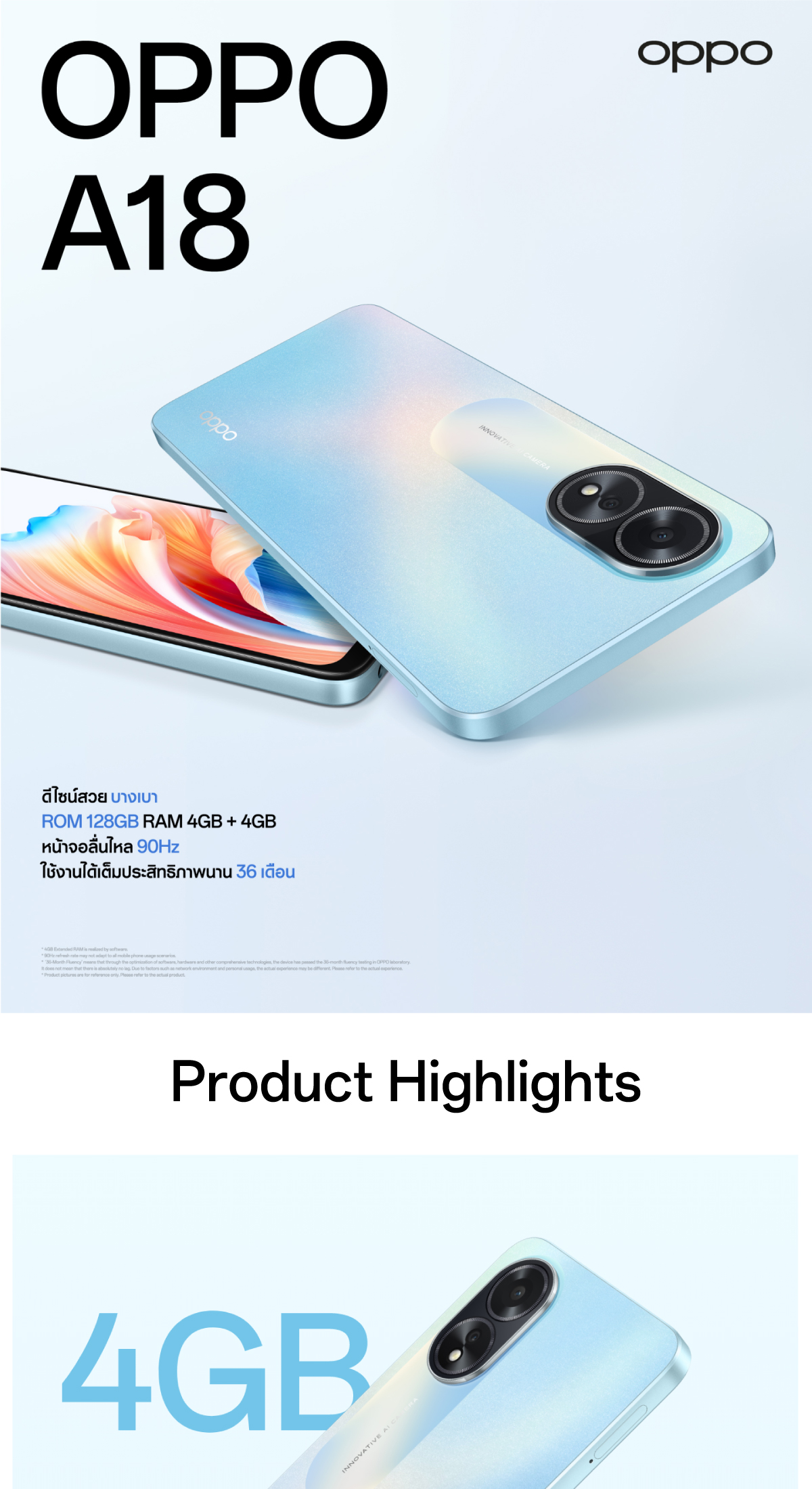OPPO A18 (4+128) l โทรศัพท์มือถือ แบตใหญ่ 5,000mAh ขยาย RAM ได้ 4GB กล้อง 8 MP รับประกัน 12 เดือน