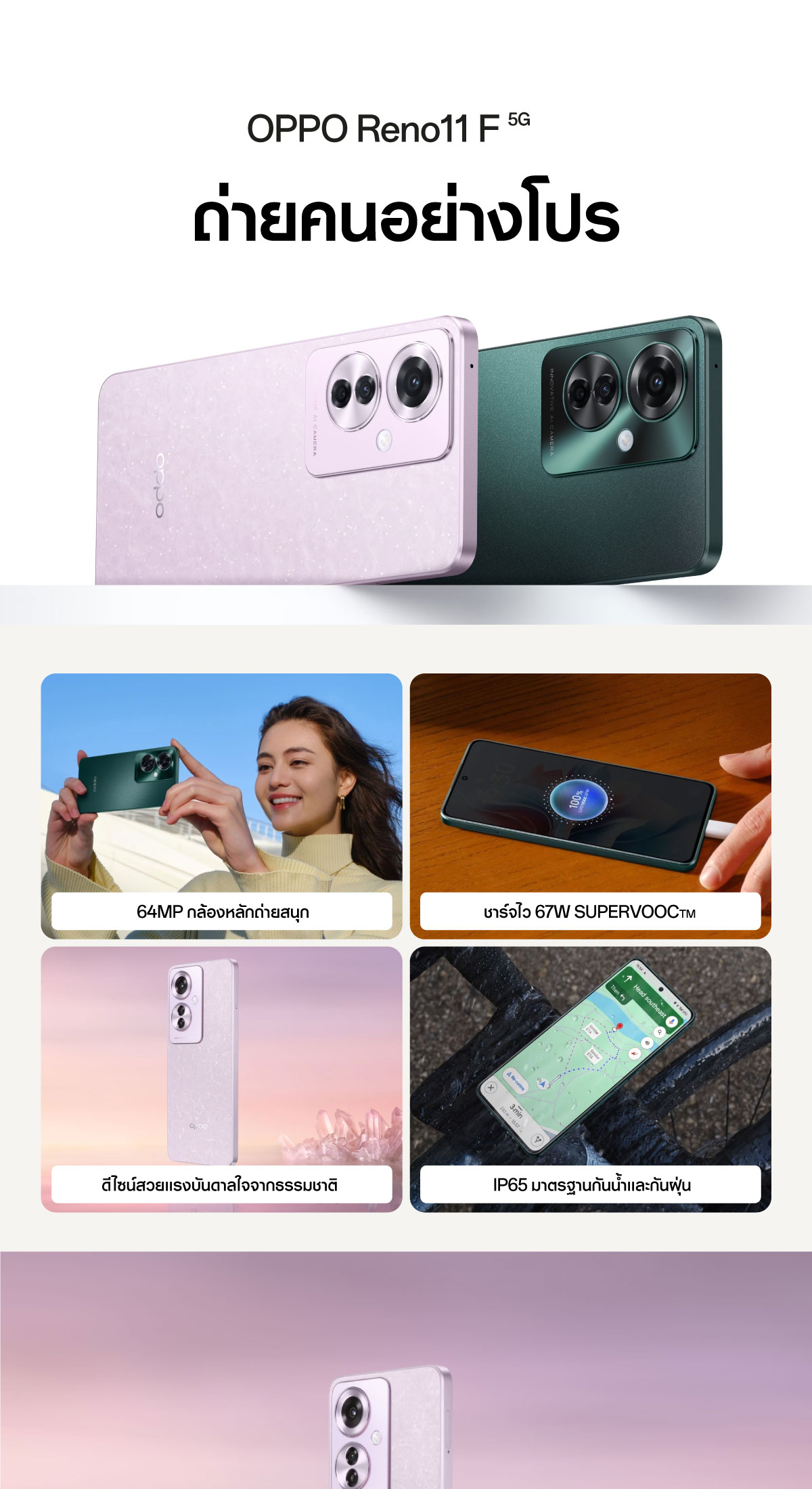 OPPO [NEW] Reno 11F (8+256) | โทรศัพท์มือถือ กล้องพอร์ตเทตสวยคมชัด 64MP ชาร์จไว67W แบตเตอรี5000mAh รับประกัน12เดือน