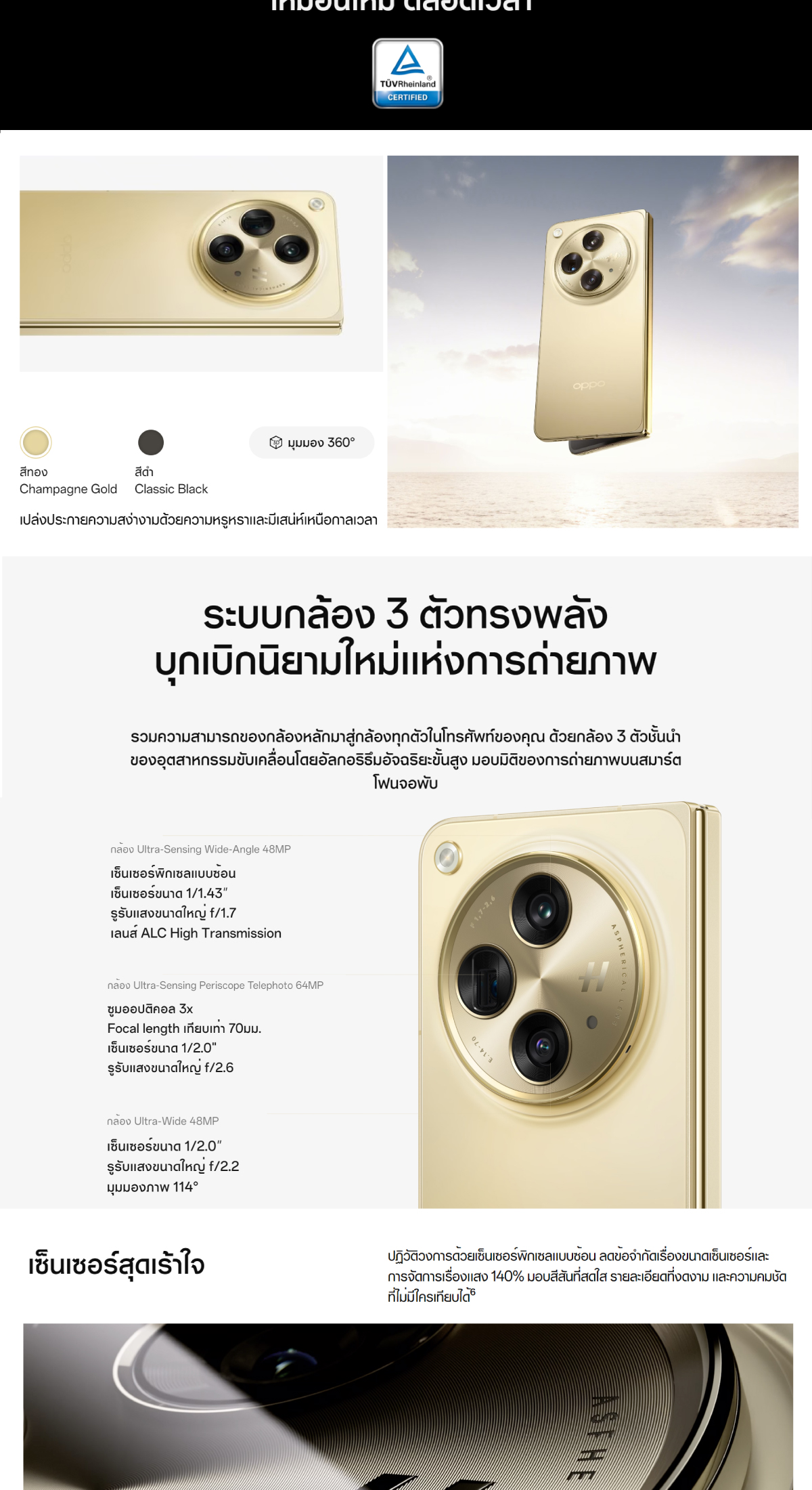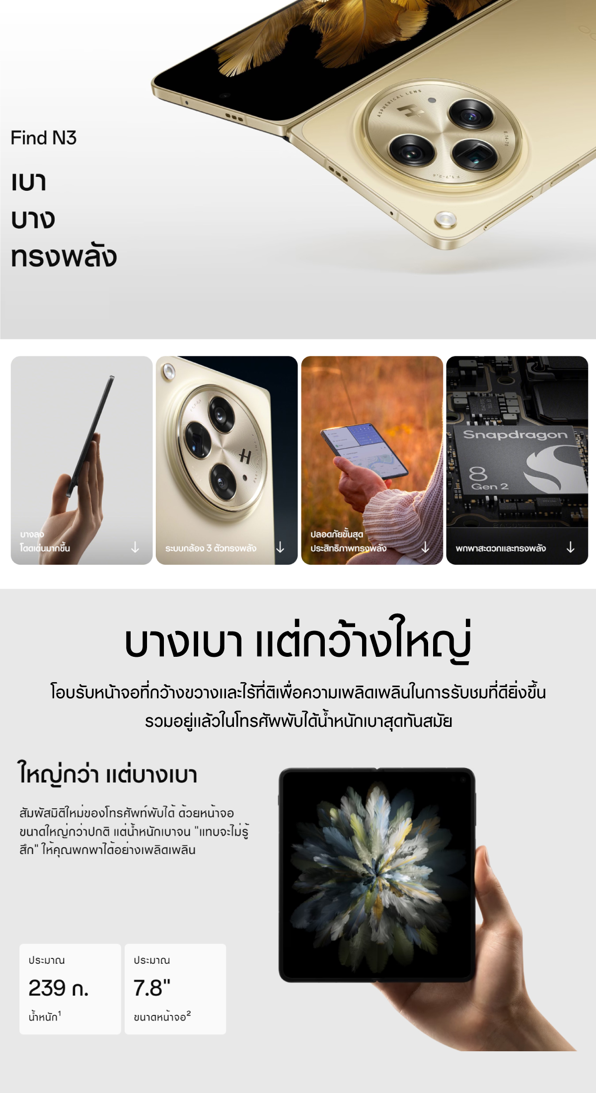 OPPO Find N3 (16+512) | โทรศัพท์มือถือ กล้องหลัก 64 MP ชาร์จไว 67W แบตเตอรี่4805mAh รับประกัน 12 เดือน