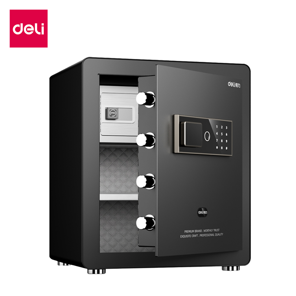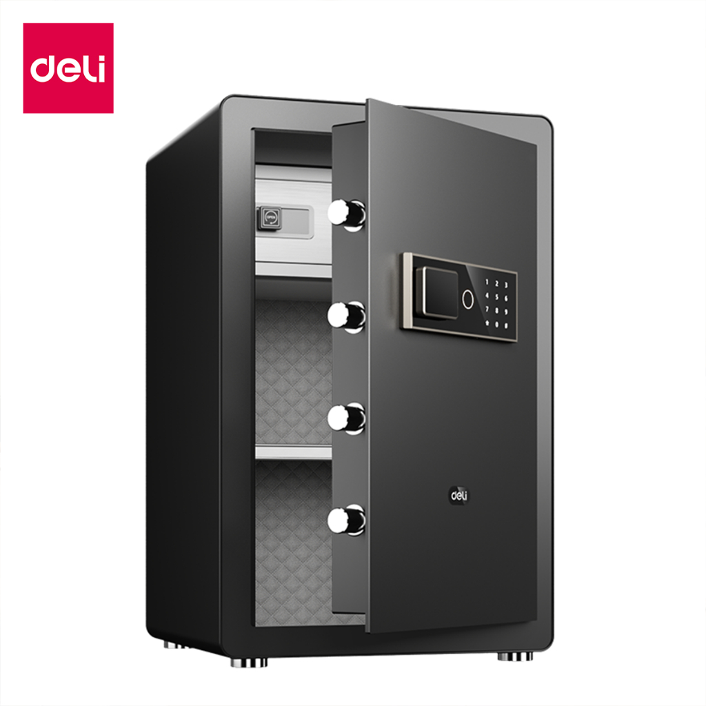 Deli รุ่น ET570 เป็นรุ่นที่เน้นความสมดุลระหว่างฟังก์ชันการใช้งานและความปลอดภัยที่แข็งแรง มาพร้อมระบบปลดล็อกแบบคู่ที่ยืดหยุ่น ผู้ใช้สามารถเลือกใช้งานระหว่างรหัสผ่านและกุญแจฉุกเฉินได้ ตัวเครื่องมีโครงสร้างเหล็กที่แข็งแรง พร้อมสลักล็อกที่หนาแน่นเพื่อป้องกันการงัดแงะ