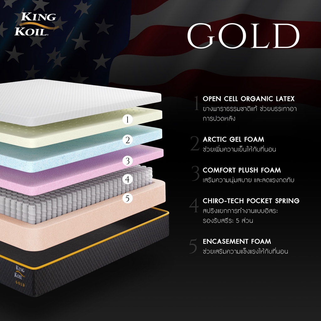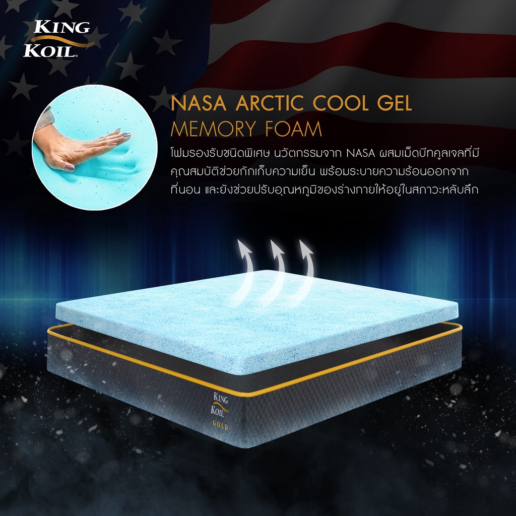 KingKoil รุ่น Gold ที่นอนไอโซคอยด์พ็อกเก็ตสปริง เสริมยางพาราธรรมชาติ Arctic Cool Gel สัมผัสนุ่มเย็นสบาย รองรับสรีระ ลดอาการปวดหลัง