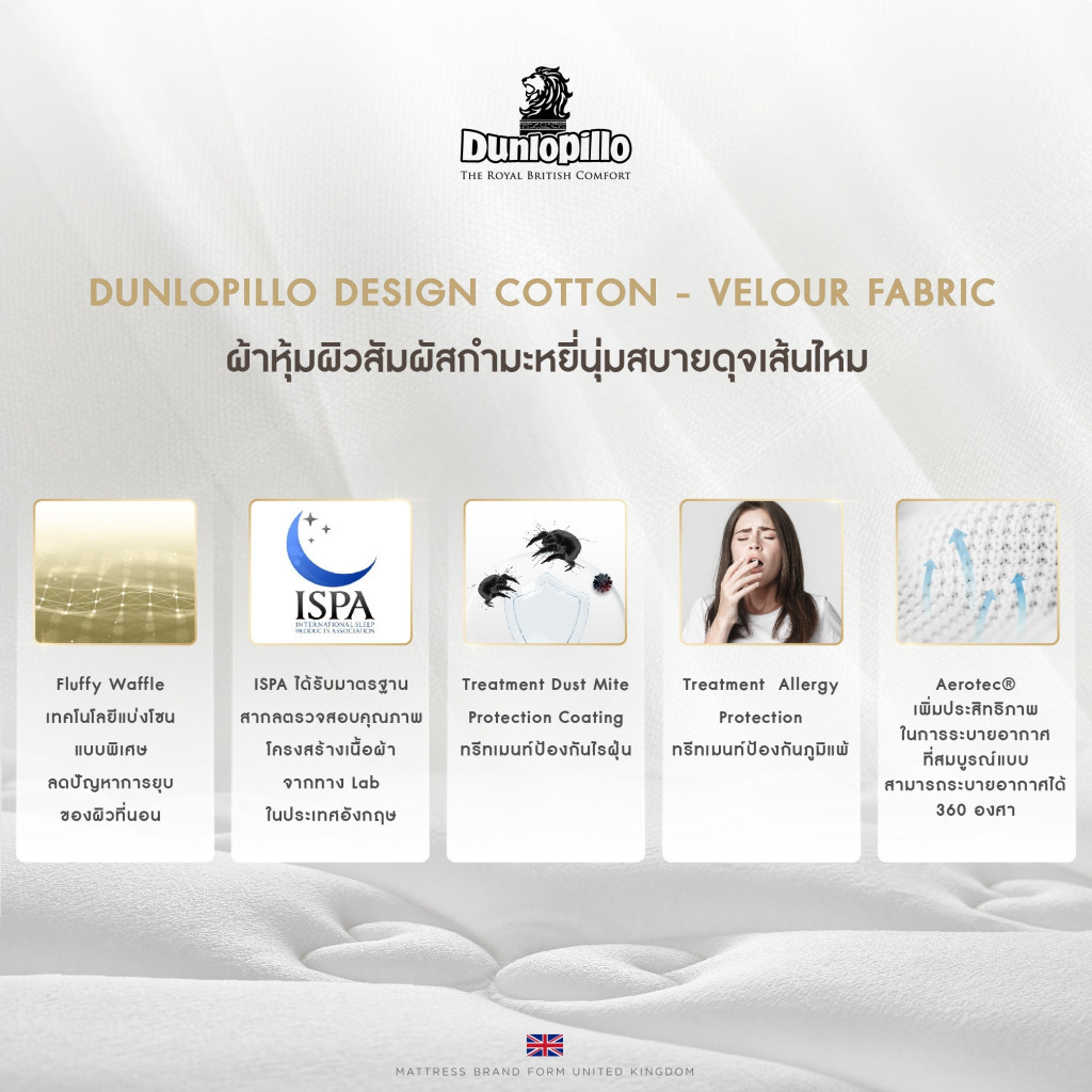 | ผ้าหุ้ม | Dunlopillo Design Cotton – Velour Fabric (สัมผัสกำมะหยี่) |