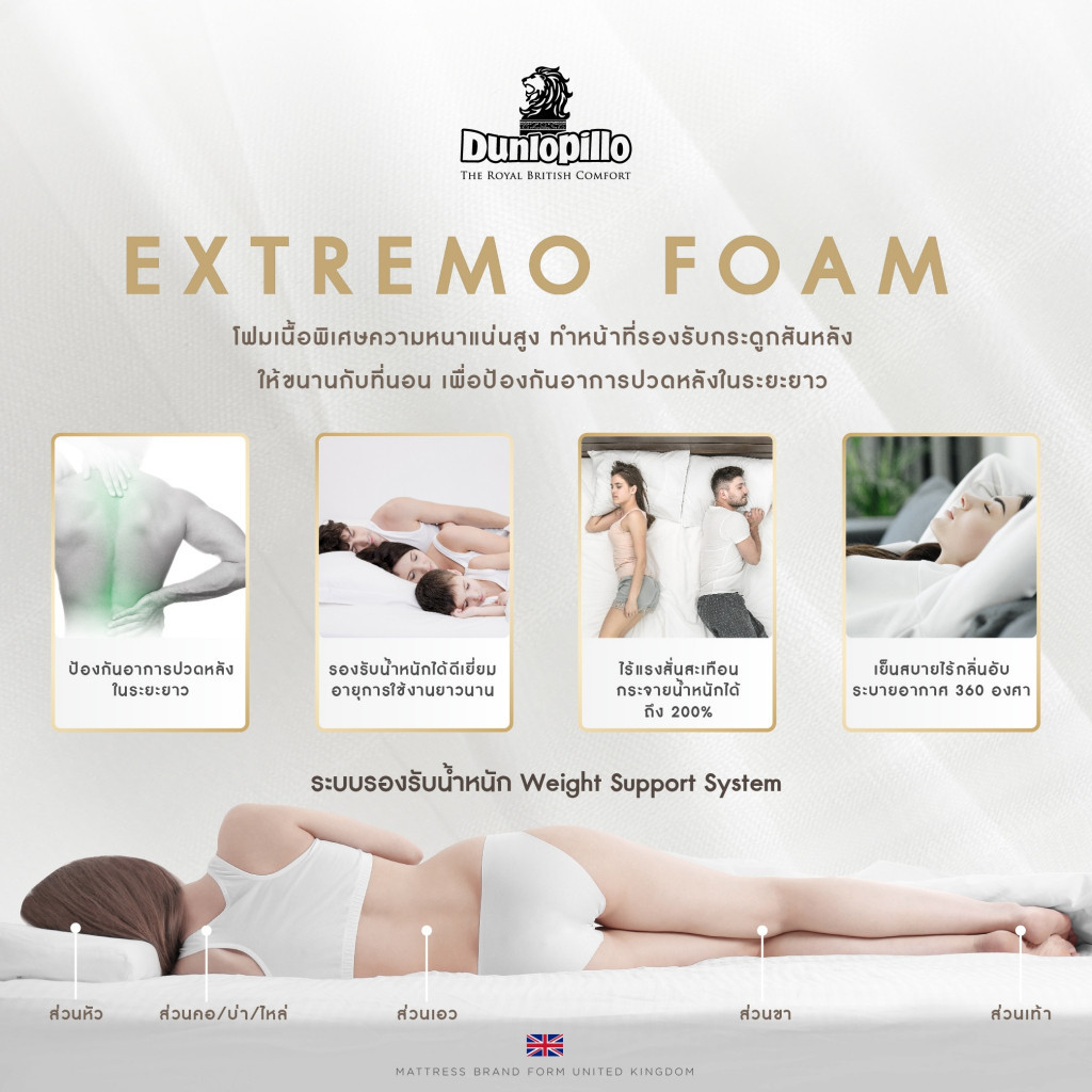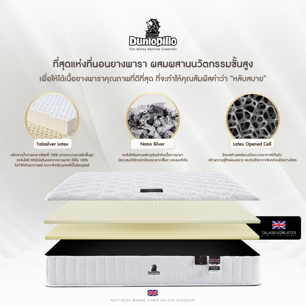 | ชื่อสินค้า | Dunlopillo ที่นอนยางพาราแท้ 100% รุ่น Bamburgh |