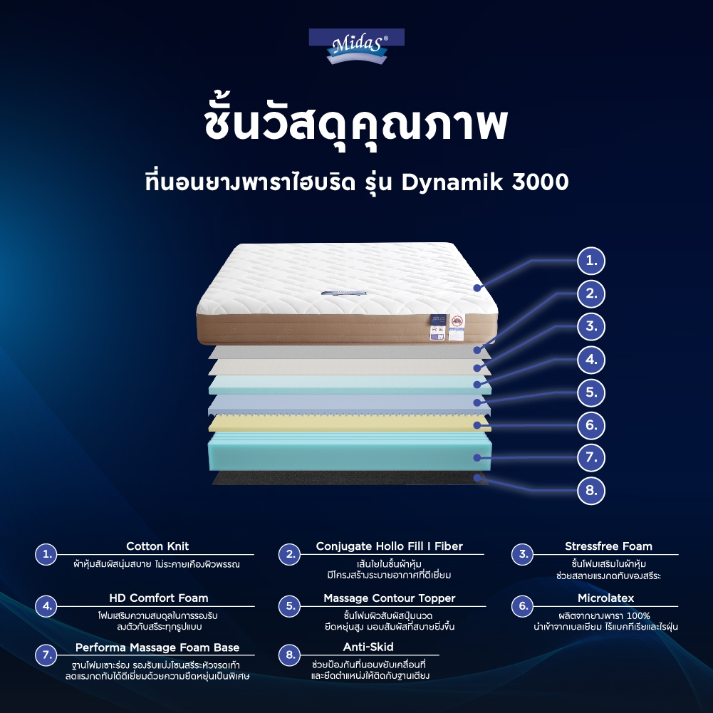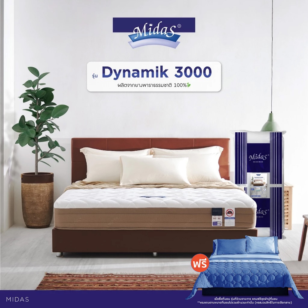Midas ฟรี!ชุดผ้าปู ที่นอนยางพาราแท้ไฮบริด รุ่น Dynamik 3000 หนา 9 นิ้ว ยางพาราจากประเทศเบลเยี่ยม ส่งฟรี