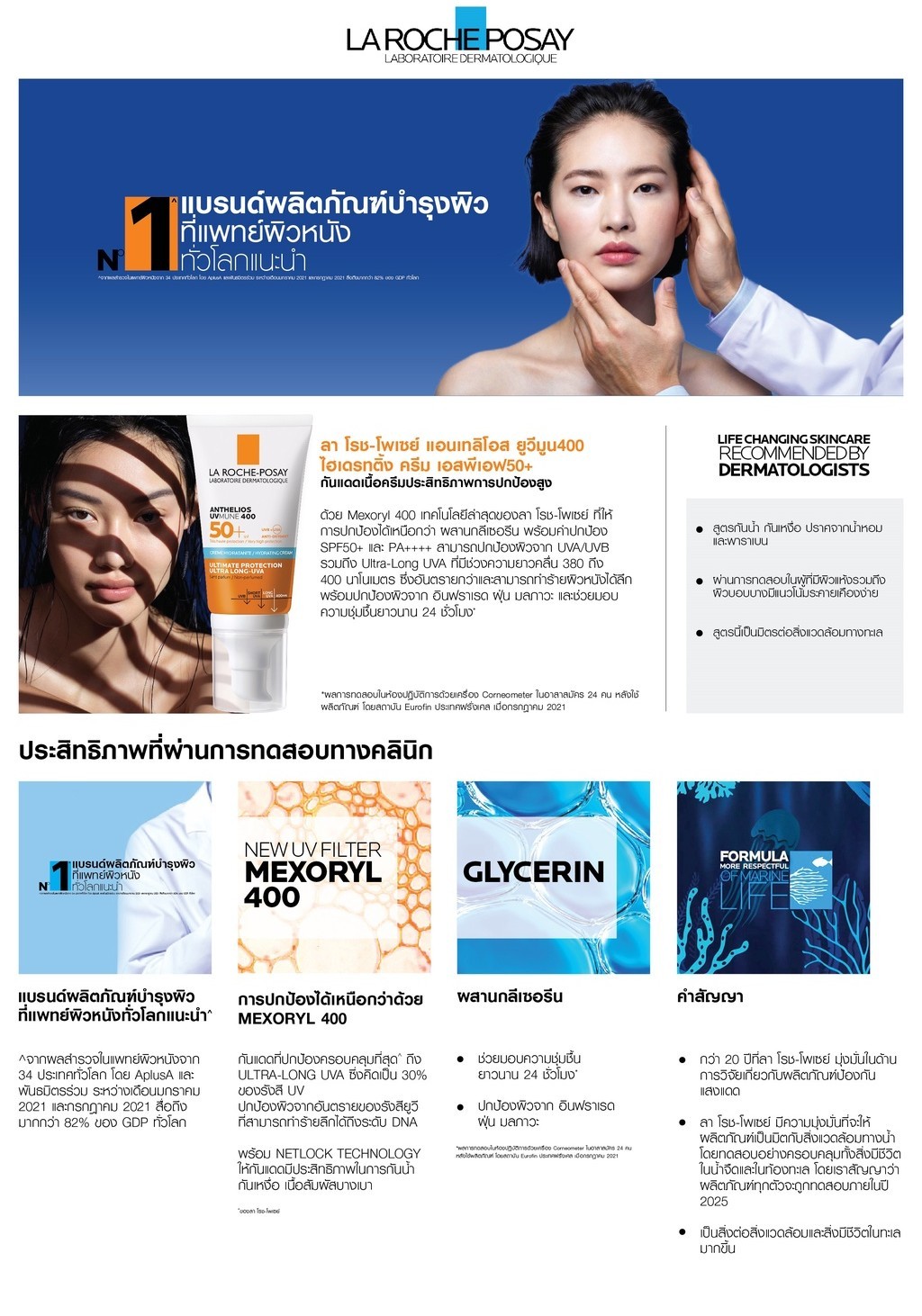 La Roche-Posay ช่วยในเรื่องการดูแลและปลอบประโลมผิว ทุกผลิตภัณฑ์สกินแคร์ได้ผ่านการทดสอบด้านประสิทธิภาพและความปลอดภัยแม้ในผิวแพ้ง่ายโดยผู้เชี่ยวชาญด้านผิวหนังLa Roche-Posay is the number 1 dermo-cosmetic brand worldwide, recommended by 90,000 dermatologists worldwide. La Roche-Posay’s mission is to offer a better life for every skin type even sensitive skin. The brand develops formulars