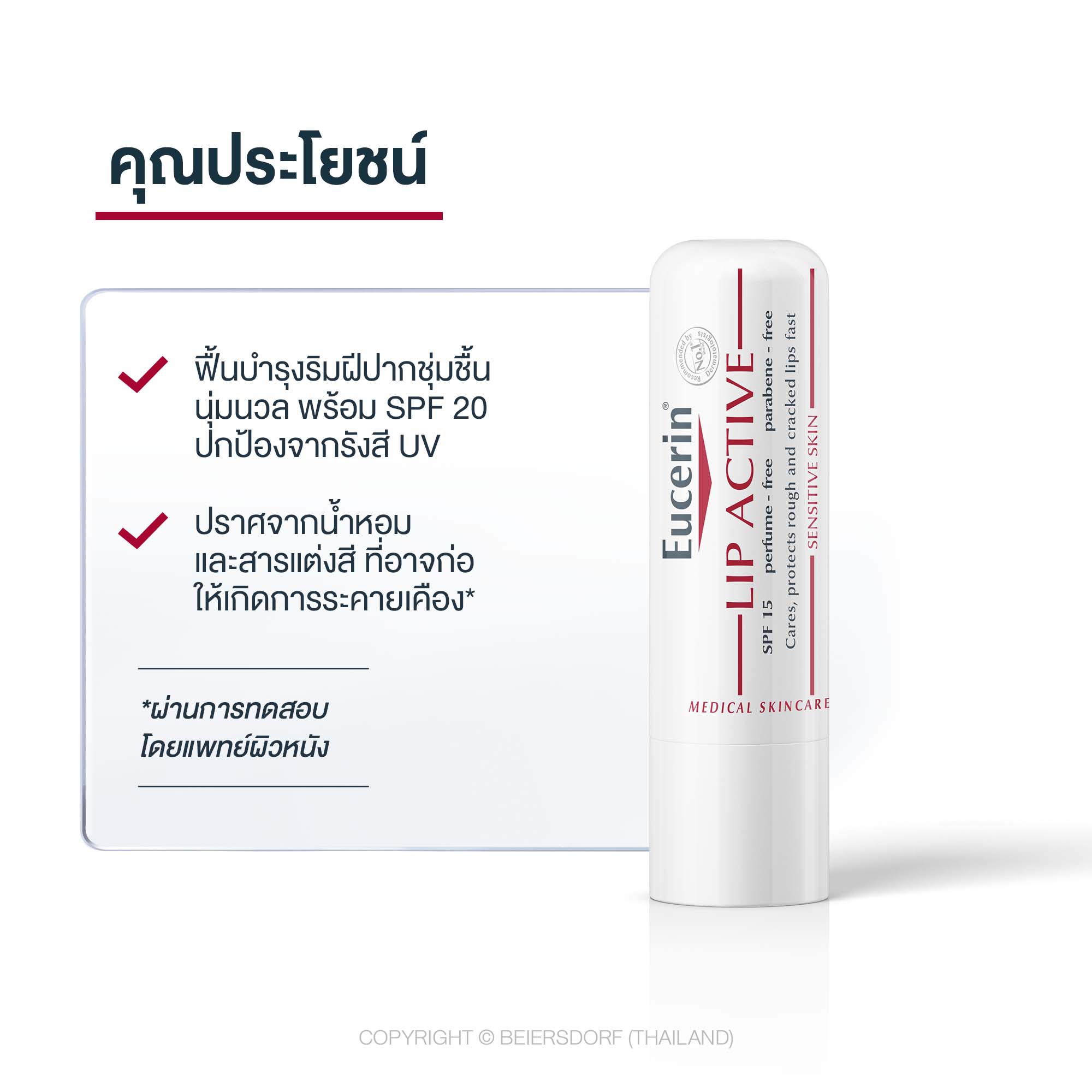 ยูเซอริน ลิป แอ็คทีฟ 4.8g Eucerin Lip Active 4.8g (ลิปมัน บำรุงริมฝีปากนุ่มชุ่มชื้น)