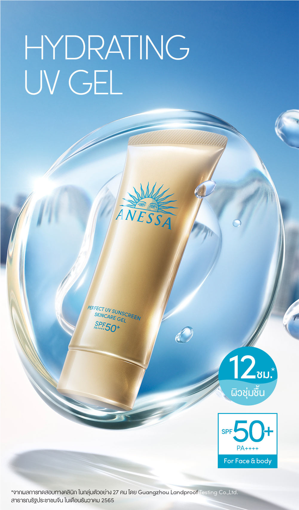 กันแดดสูตรเจลครีมชุ่มชื่น มอบผิวโกล์วสวย ปกป้องผิวจากรังสี UV พร้อมลดการเกิดจุดด่างดำ ผิวชุ่มชื่นยาวนาน 12 ชั่วโมง* สำหรับผิวหน้าและผิวกาย