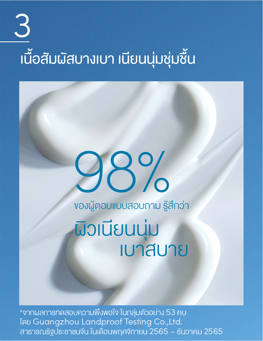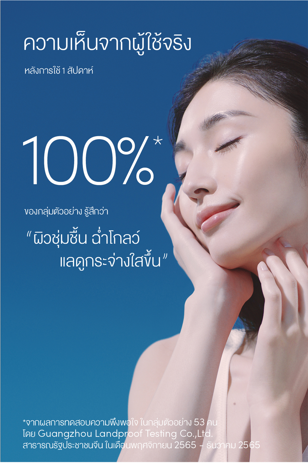 *จากผลการทดสอบทางคลินิก ในกลุ่มตัวอย่าง 27 คน โดย Guangzhou Landproof Testing Co.,Ltd. สาธารณรัฐประชาชนจีน ในเดือนธันวาคม 2565