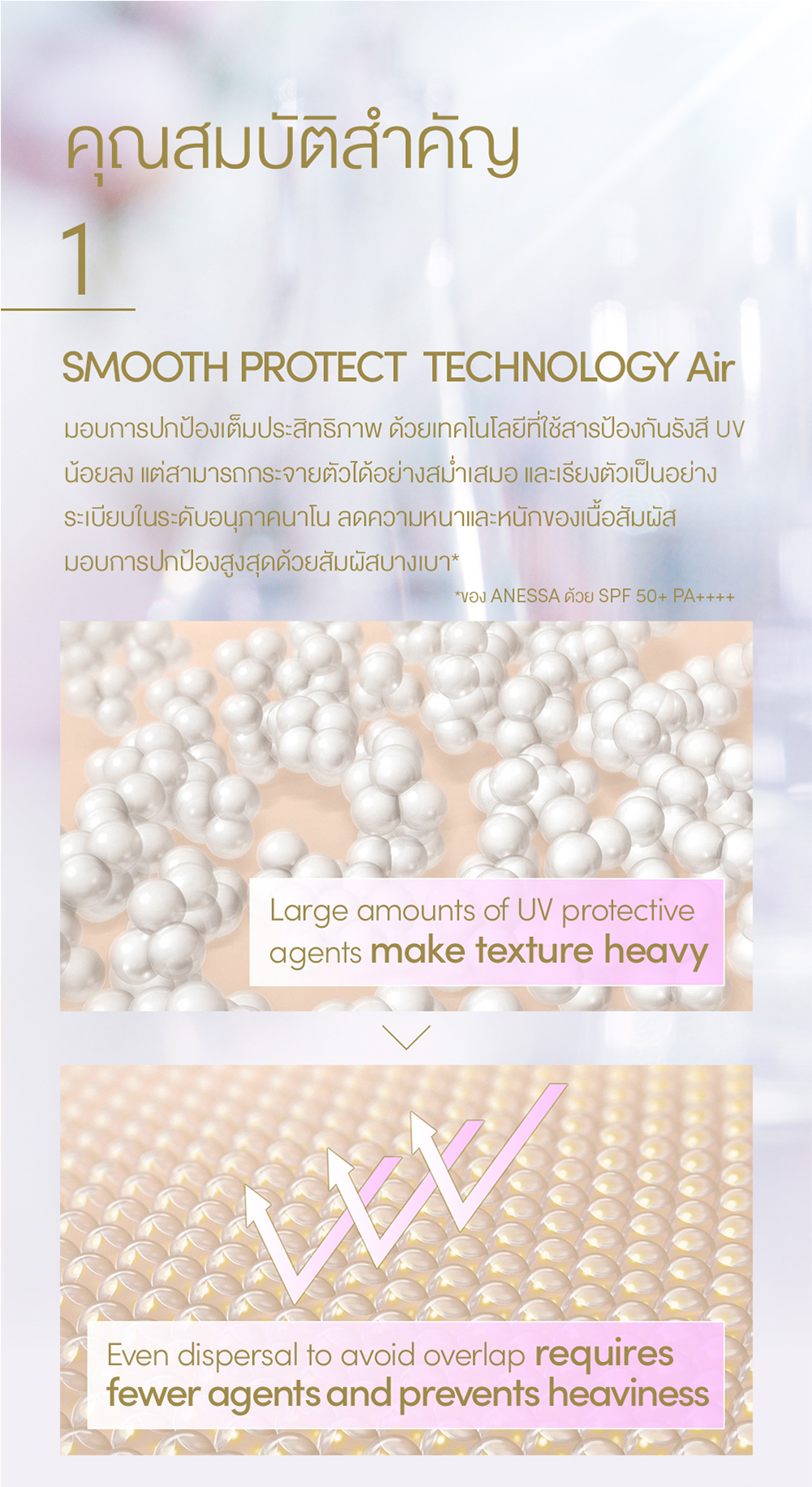 Smooth Protect Technology Air ช่วยให้ UV Protection Powder กระจายตัวและเนียนเรียบสม่ำเสมอ มอบเนื้อสัมผัสบางเบา เนียนละมุน สบายผิวยิ่งขึ้น