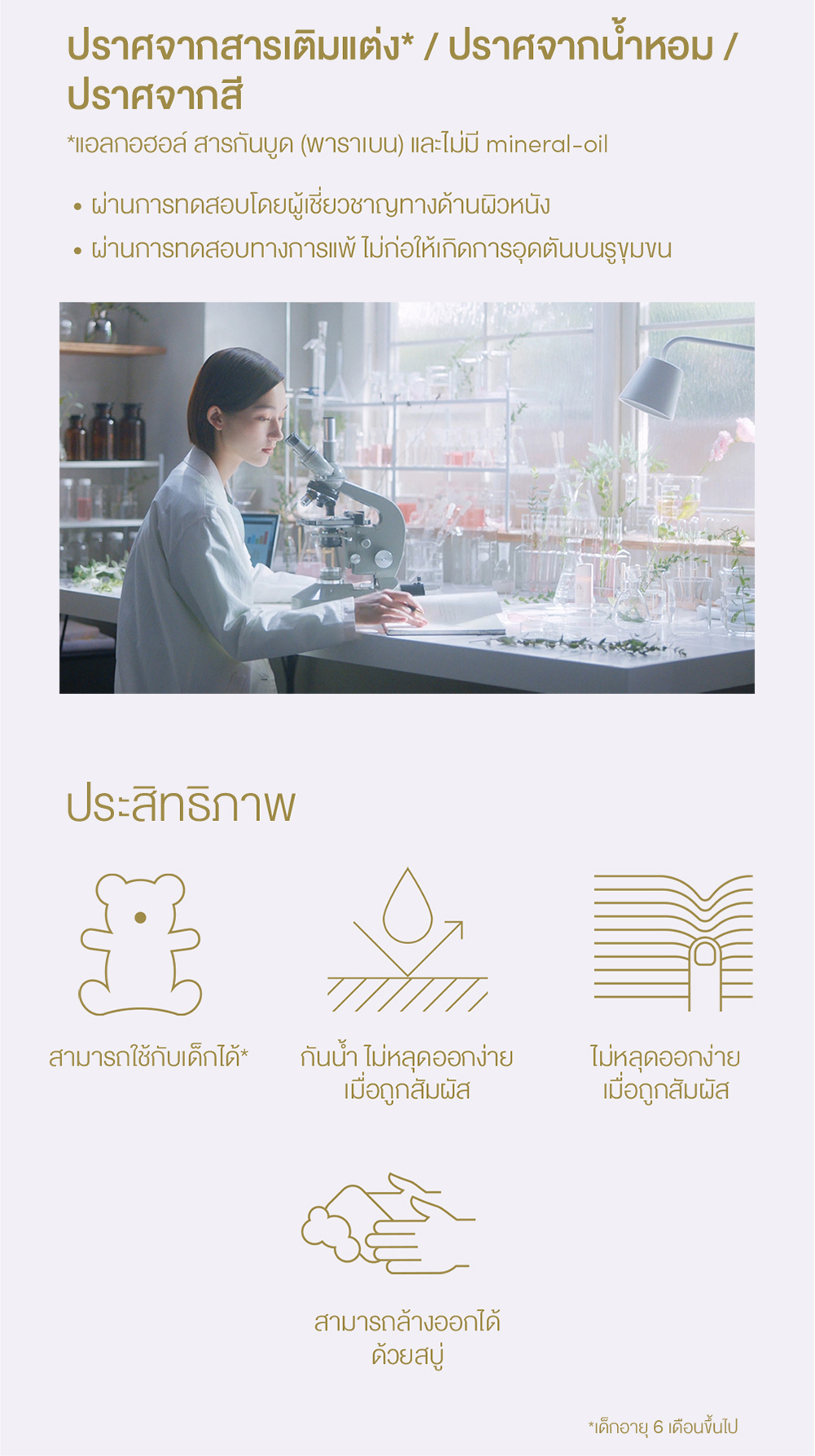 เหมาะสำหรับผิวบอบบางแพ้ง่าย และผิวเด็ก^ ไม่ก่อเกิดการระคายเคืองผิว