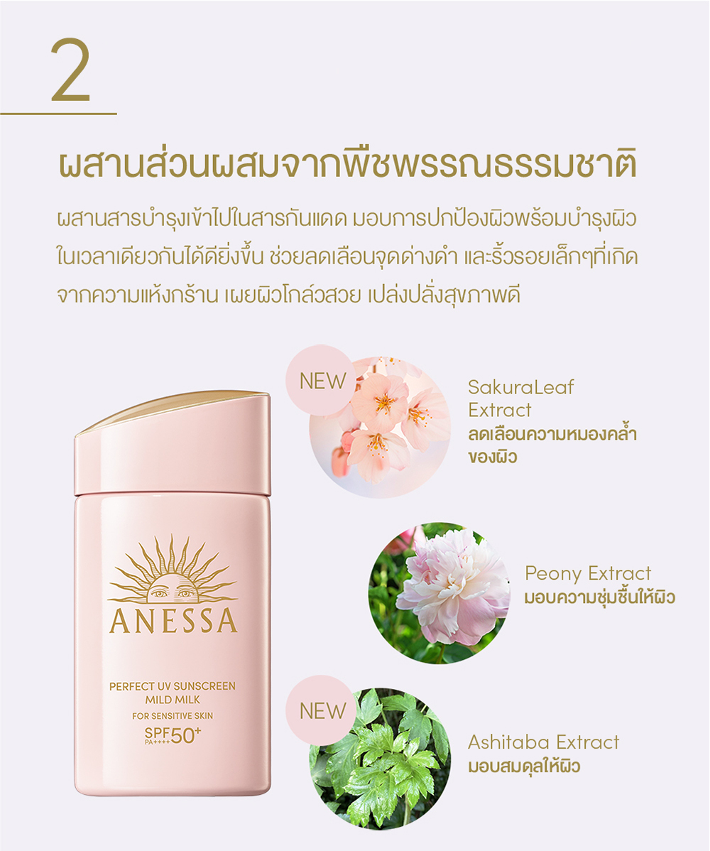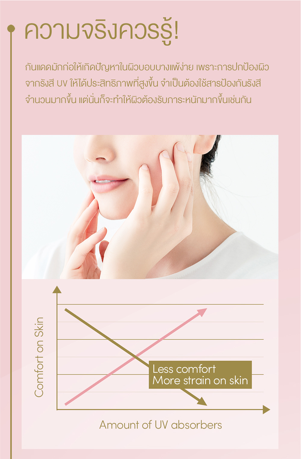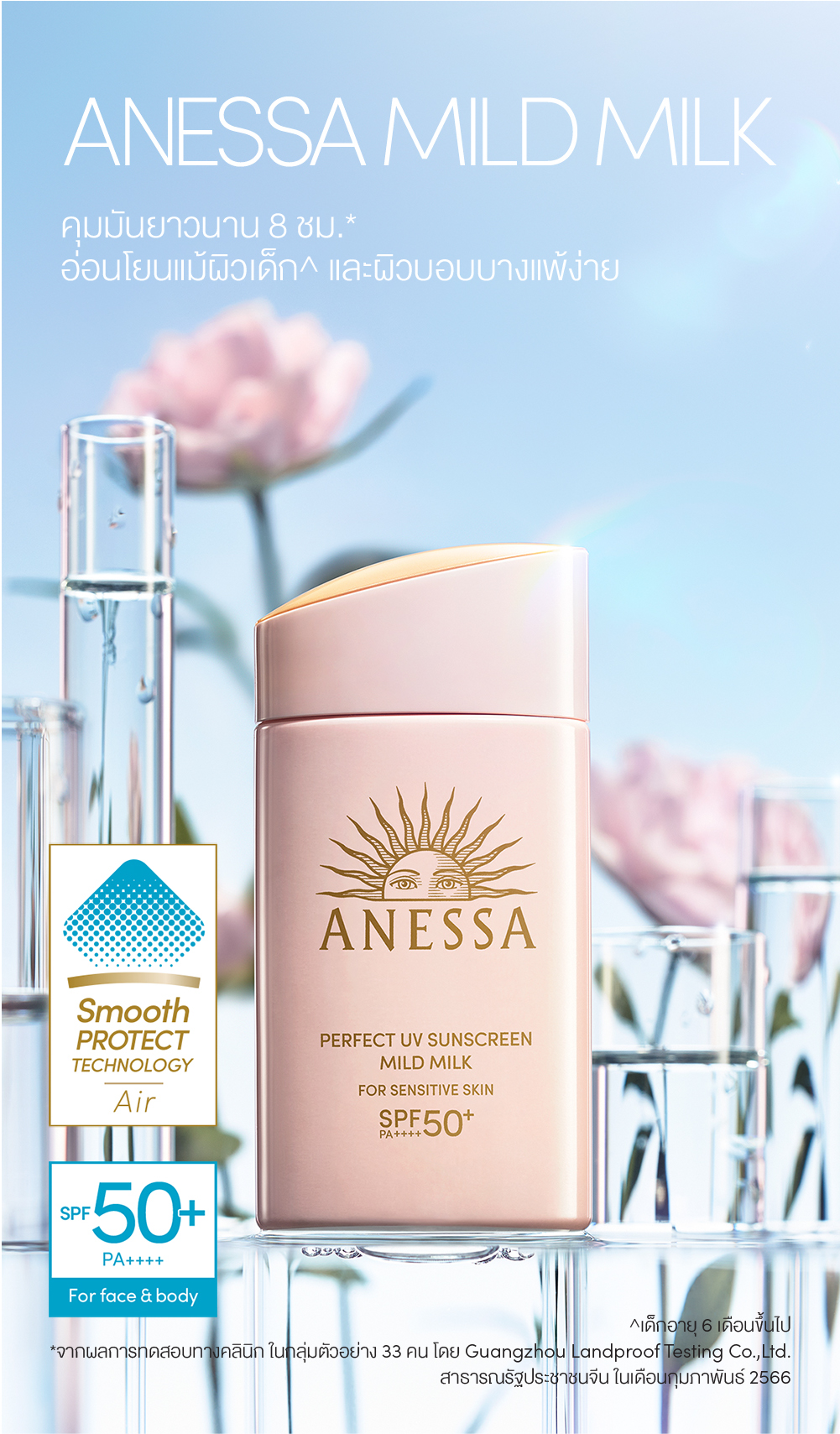 กันแดดเนื้อน้ำนมสูตรอ่อนโยน บางเบาสบายผิว ซึมไว ไม่เป็นคราบ ปกป้องผิวบอบบางได้อย่างเต็มที่ ด้วย SPF50+PA++++
