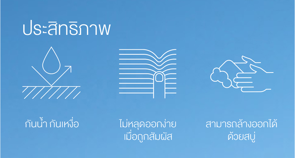 ● สูตรกันน้ำ กันเหงื่อ ติดทนนานไม่หลุดง่าย ครอบคลุมทุกกิจกรรม ทั้งการใช้เป็นประจำในทุกวัน เล่นกีฬา กิจกรรมกลางแจ้ง ไปทะเล ไปว่ายน้ำ