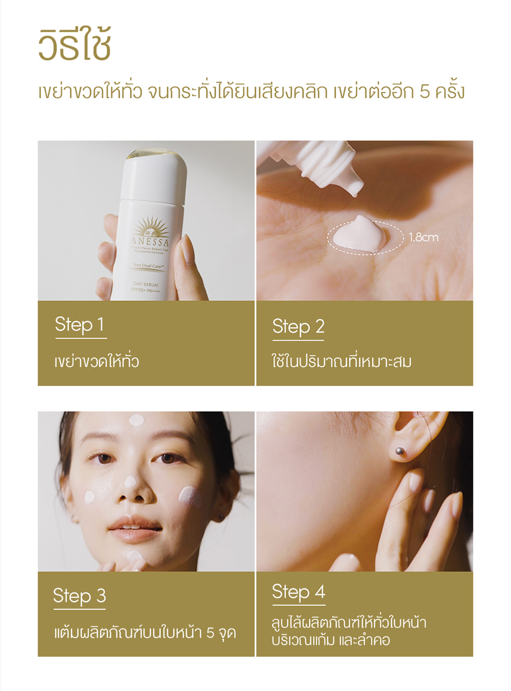 เพื่อให้ Anessa Day Serum ทำงานได้อย่างเต็มประสิทธิภาพและมอบผลลัพธ์ที่ดีที่สุดให้กับผิวของคุณ ลองทำตามขั้นตอนง่ายๆ เหล่านี้นะ: