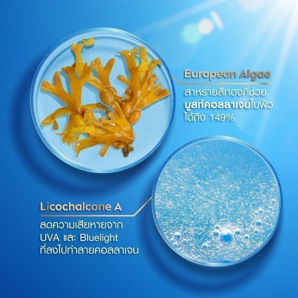 สาหร่ายจากทะเลน้ำลึก ปกป้องคอลลาเจนในผิวจากการถูกแดดทำร้าย ลดเลือนริ้วรอยแม้บริเวณรอบวงตา 0% octinoxate, oxybenzone
