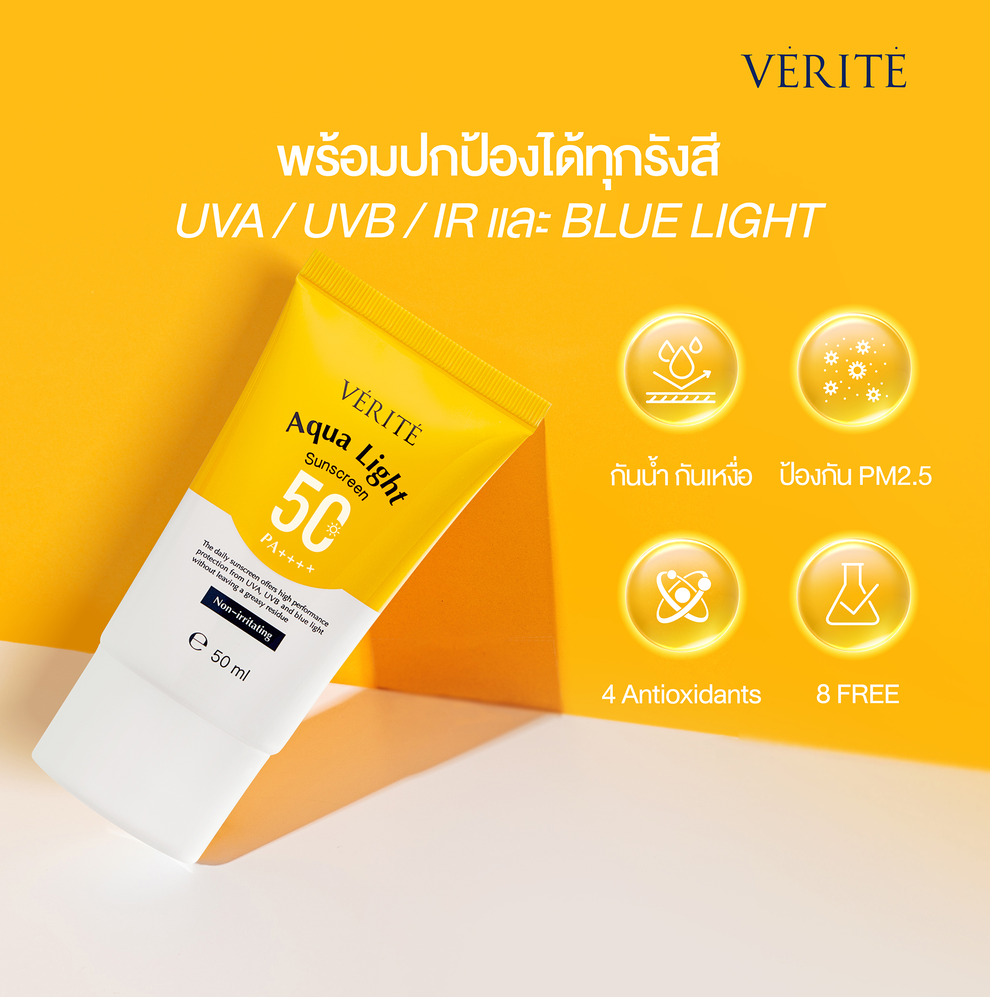 Verite Aqua Light Multi-Protection Sunscreen SPF 50+ PA++++ 50ml ครีมกันแดด ปกป้องผิวจากรังสี UVA, UVB แสงสีฟ้าจากมือถือ