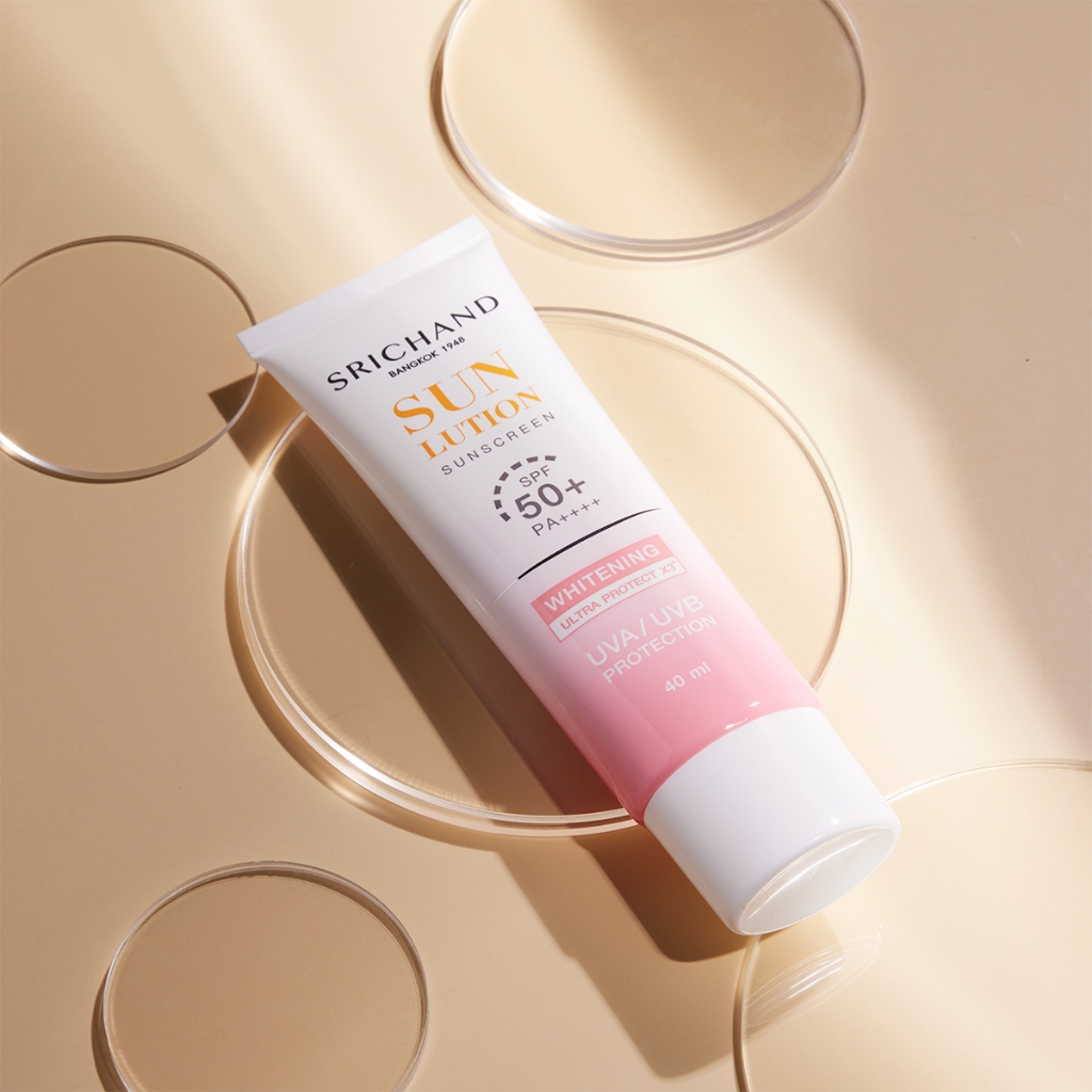 SRICHAND กันแดดสกินแคร์ สูตรผิวขาวกระจ่างใส ซันลูชั่น สกิน ไวท์เทนนิ่ง ซันสกรีน เอสพีเอฟ 50+ พีเอ++++ 40 มล.