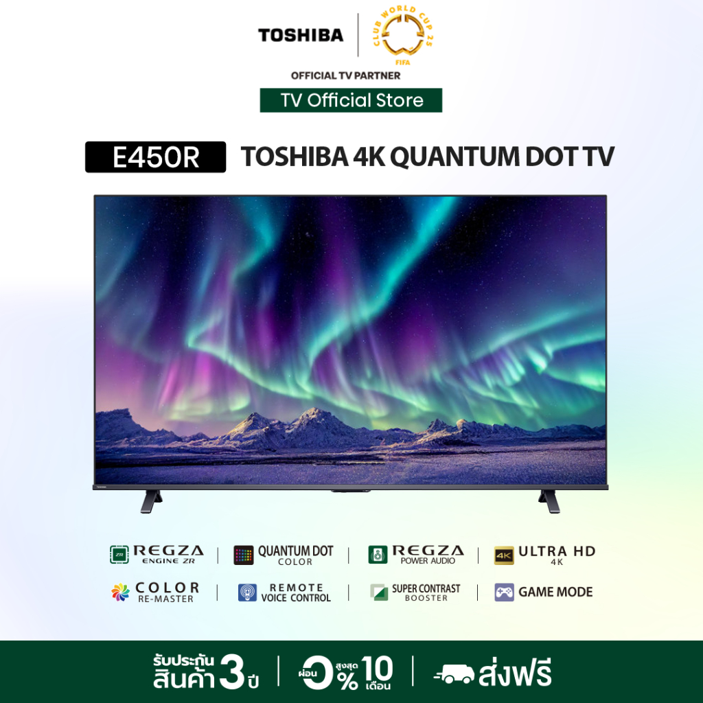 ชื่อสินค้า: TOSHIBA TV E450RP ทีวีอัจฉริยะที่มอบประสบการณ์การรับชมเหนือระดับด้วยภาพคมชัด 4K Quantum Dot และเสียงทรงพลัง Dolby Atmos