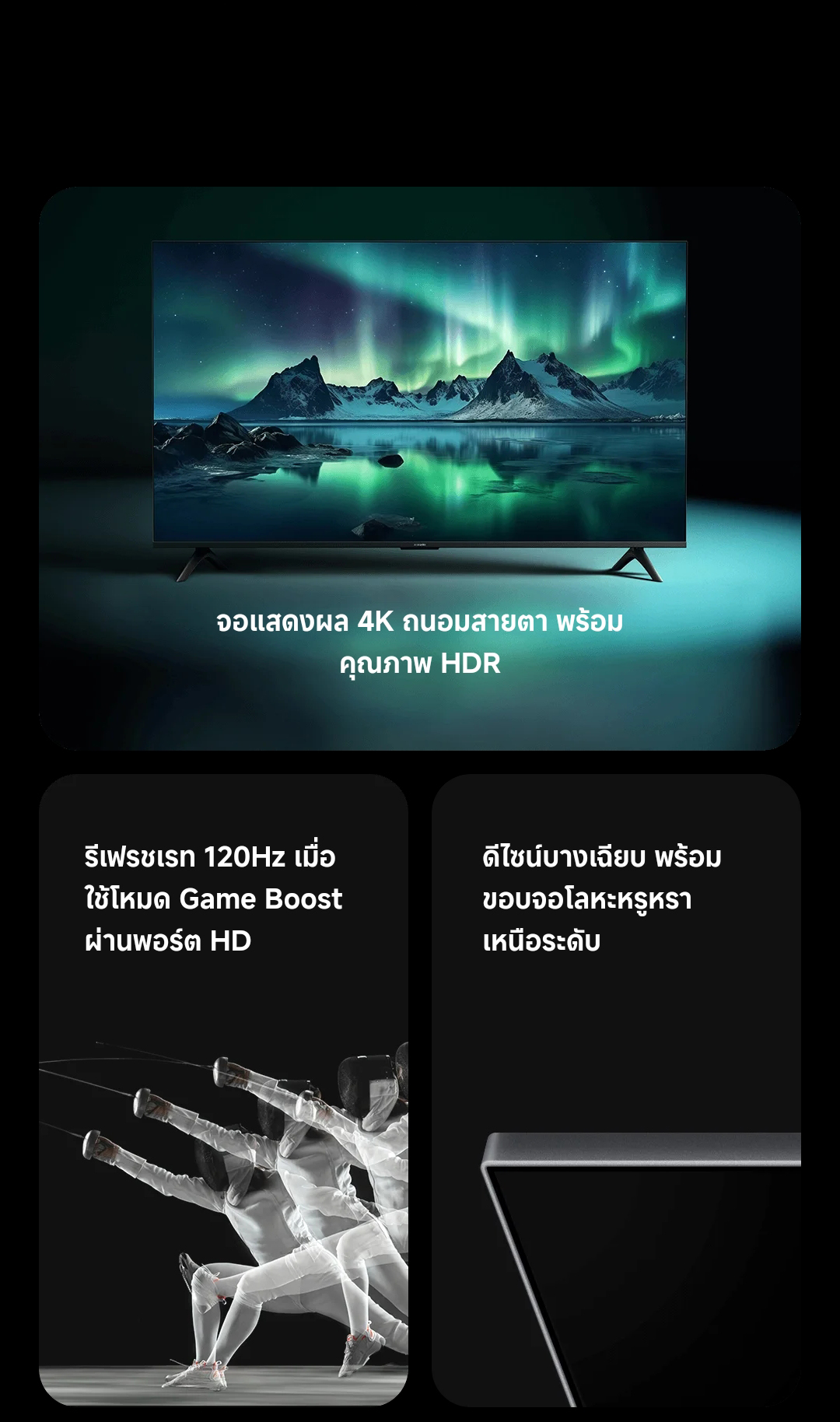 | การเล่นเกม | อัตรารีเฟรชมาตรฐาน 60Hz | ✅ Game Boost Mode 120Hz ลื่นไหลขั้นสุด |