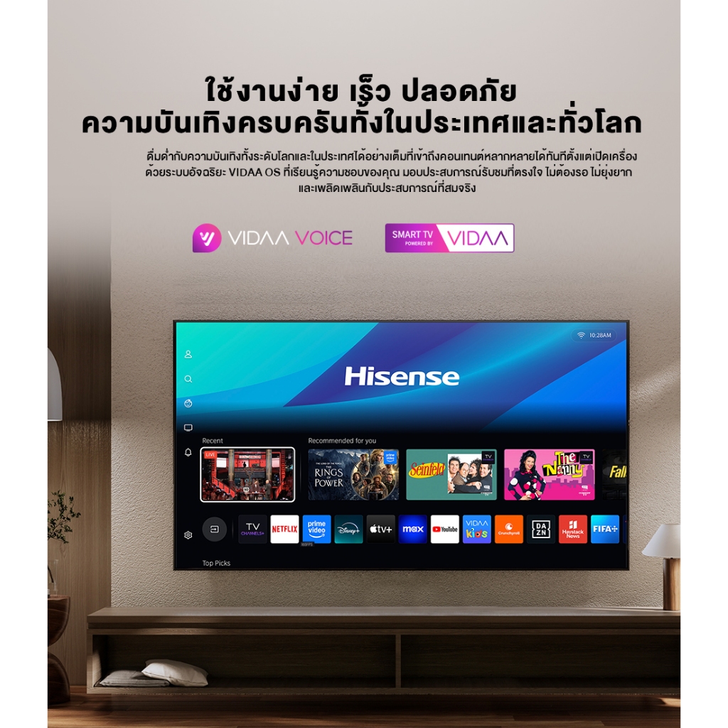 ชื่อสินค้า : Hisense EU7Q Series ทีวี 4K VIDAA Mini-LED Pro พร้อมระบบเสียง Devialet และ 165Hz Game Mode