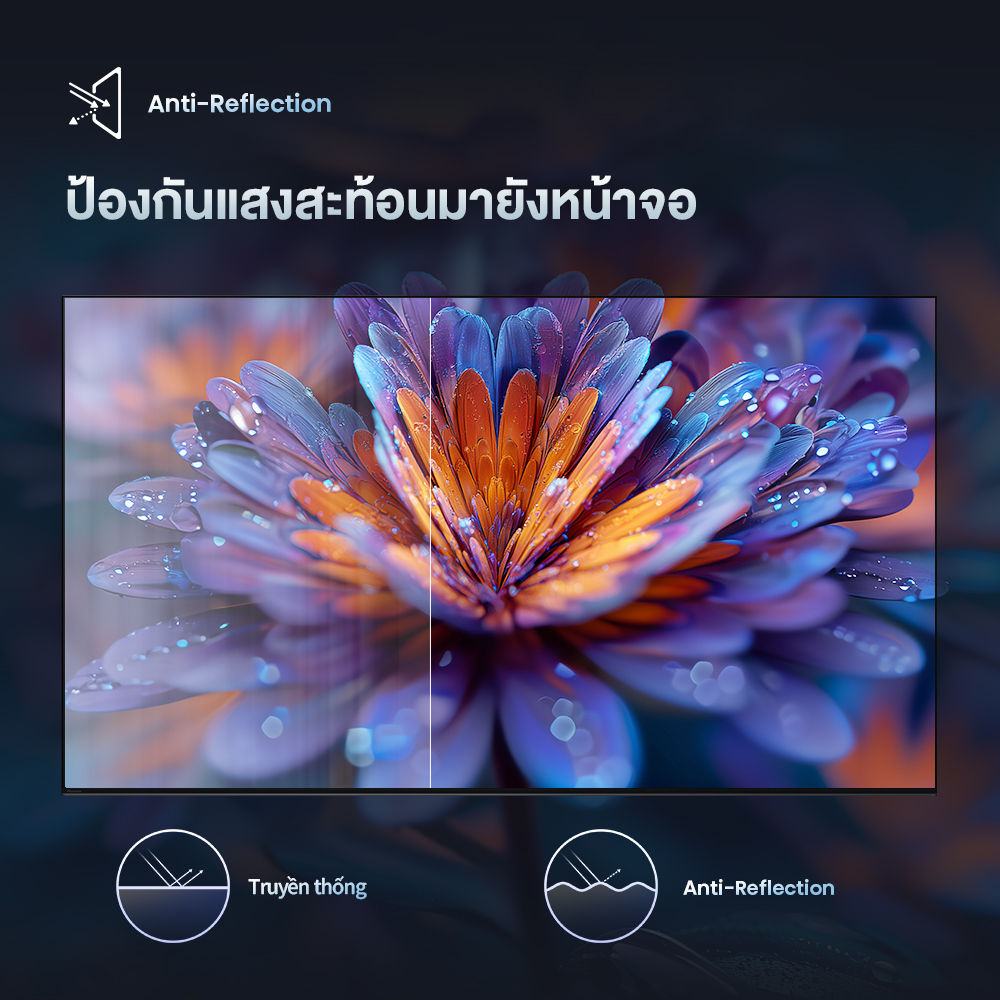 | เทคโนโลยี Backlight | Standard LED (ให้แสงเป็นโซนกว้าง) | ✅ Mini-LED Pro (ควบคุมแสงเป็นจุดเล็กๆ นับพัน) |