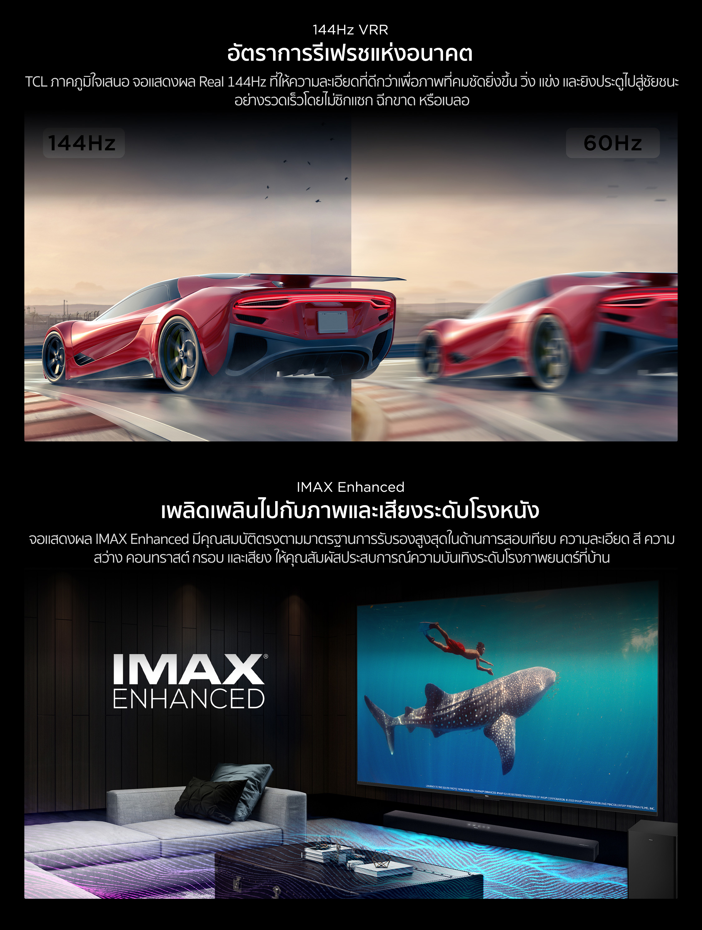 144 Hz VRR Refresh rate only for 55"/65"/75"/85"/98" inches