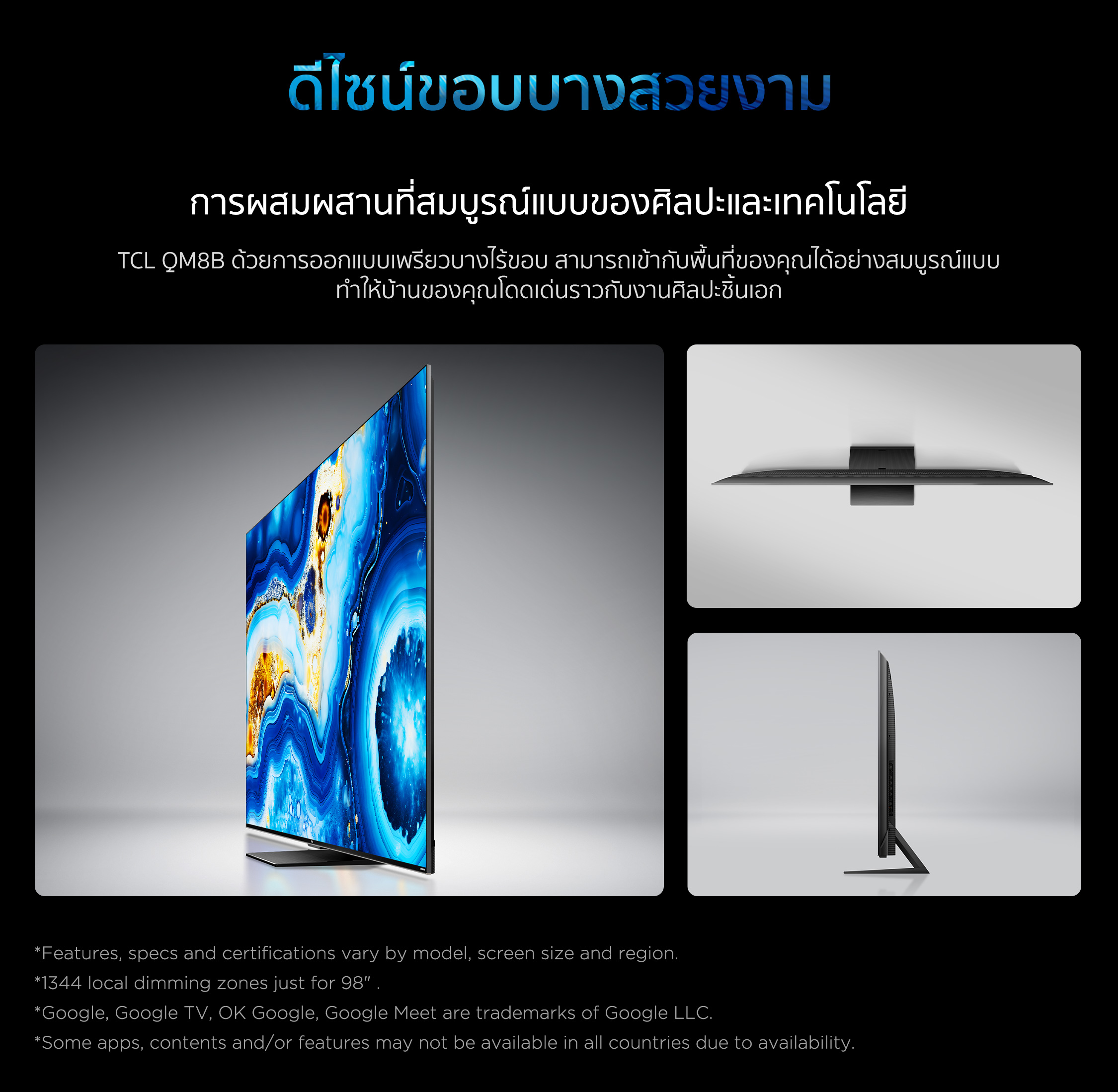 TCL ทีวี 65 นิ้ว 4K Mini QLED Google TV รุ่น 65QM8B ระบบปฏิบัติการ Google/Gaming TV/Netflix & Youtube & 144HZ VRR - Wifi