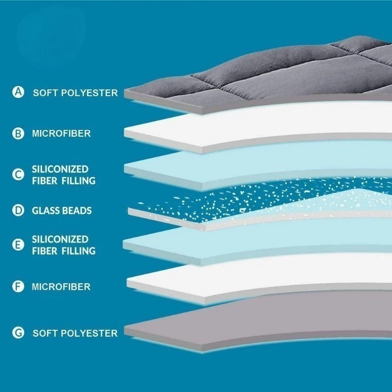 ผ้าห่มรุ่น G-Series ไม่ใช่แค่ผ้าห่มถ่วงน้ำหนักทั่วไป แต่เป็นนวัตกรรมที่ออกแบบมาเพื่อแก้ปัญหาหลัก (Pain Point) ของผ้าห่มแบบเดิมๆ นั่นคือ "ความรู้สึกหนักอึดอัดและร้อน" ด้วยการใช้เม็ดแก้ว (Glass Beads) ขนาดเล็กพิเศษเพียง 0.8-1.2 มม. ทำให้การกระจายน้ำหนักเนียนละเอียดและสม่ำเสมอทั่วทั้งผืนผ้า