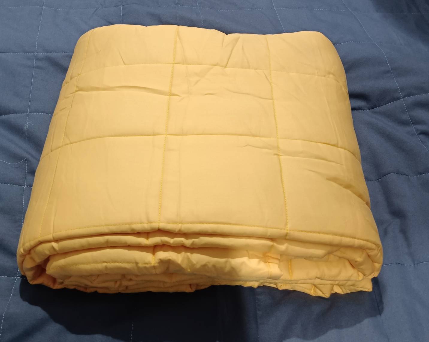 ชอบเนื้อผ้ามากครับ นุ่มลื่น สบายผิวมาก ผมเลือกสีเทาไป สวยถูกใจเลย การเย็บก็ดีมาก ไส้ในที่เป็นเม็ดๆ ไม่ไหลไปกองรวมกันเลย มันกระจายตัวดีมาก ทำให้รู้สึกหนักเท่ากันทั้งตัว แฟนก็ชอบครับ กำลังจะสั่งอีกผืน